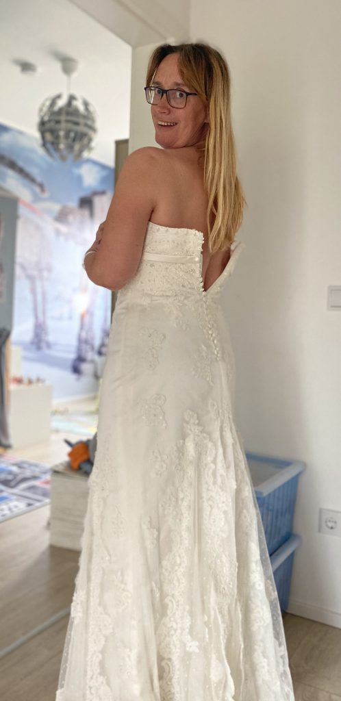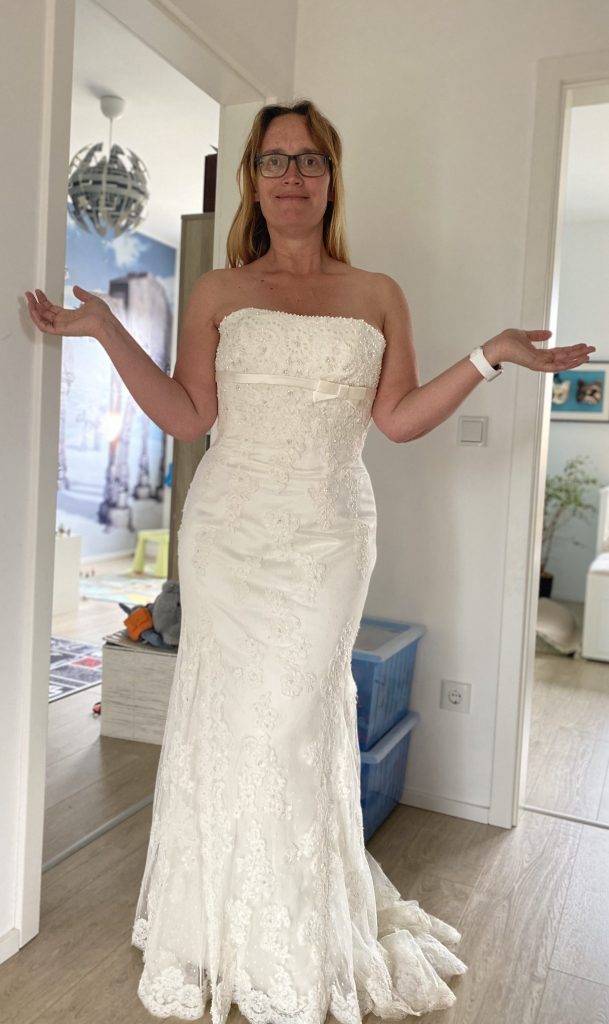 Als das erste Bild mit Dir im Hochzeitskleid sah sagte ich unwillkürlich, schön, das Kleid passt immer noch, das Bild Nummer zwei …. belehrte mich eines Besseren. Schön und alles Gute für die Jahre, die noch kommen!