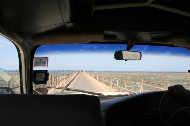Doch zurück zur Insel und der Anfahrt dahin. Wir erreichten die Küste während der Ebbe und somit konnten wir die 3,5 km lange Brücke auf Stelzen im Trockenen bewundern. Praktischerweise ist die Brücke ne Einbahnstraße. Bei über drei Kilometern ne echte Herausforderung sich mit Handzeichen klar zu machen, wer nun zuerst losfahren kann. Meine Erfahrungen in engen Straßen in Deutschland enden meist mit einem Schimpfkonzert des Entgegenkommenden, weil ich alle Zeichen der Vorfahrts-Wünsche böswillig ignoriere. In Schottland auf den Single-Treck-Roads war es irgendwie wieder einfacher. Scheinbar weil nicht so viele Deutsche unterwegs waren. Ähnlich in Mosambik und somit war die Überfahrt komplett unspektakulär.