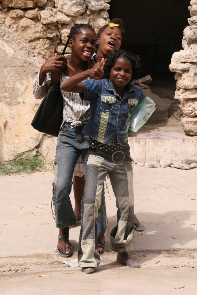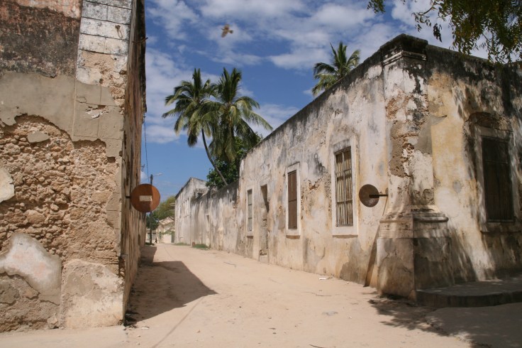 Eines stand vom ersten Moment an fest: Mein Fotofinger würde hier in die Überstunden gehen. Unser Superman Osman setzte uns an einem der herrschaftlichen Bauten ab und wir bezogen ein Zimmer mit sechs Meter hohen Wänden und traumhaften Fliesen und Fenstern, einem Innenhof zum chillen und einem Himmelbett unterm Moskitonetz. Und er verabschiedete sich für zwei Tage von uns. Zuerst dachte ich, er macht Scherze. Wir sind zwei Weibchen alleine auf einer Insel mit lauter Afrikanern? Okay, wir sind nicht mehr die Jüngsten und vielleicht auch nicht die Allerschönsten, aber auch uns würde jemand zu Hause vermissen. Vielleicht nicht sofort, aber irgendwann doch.
