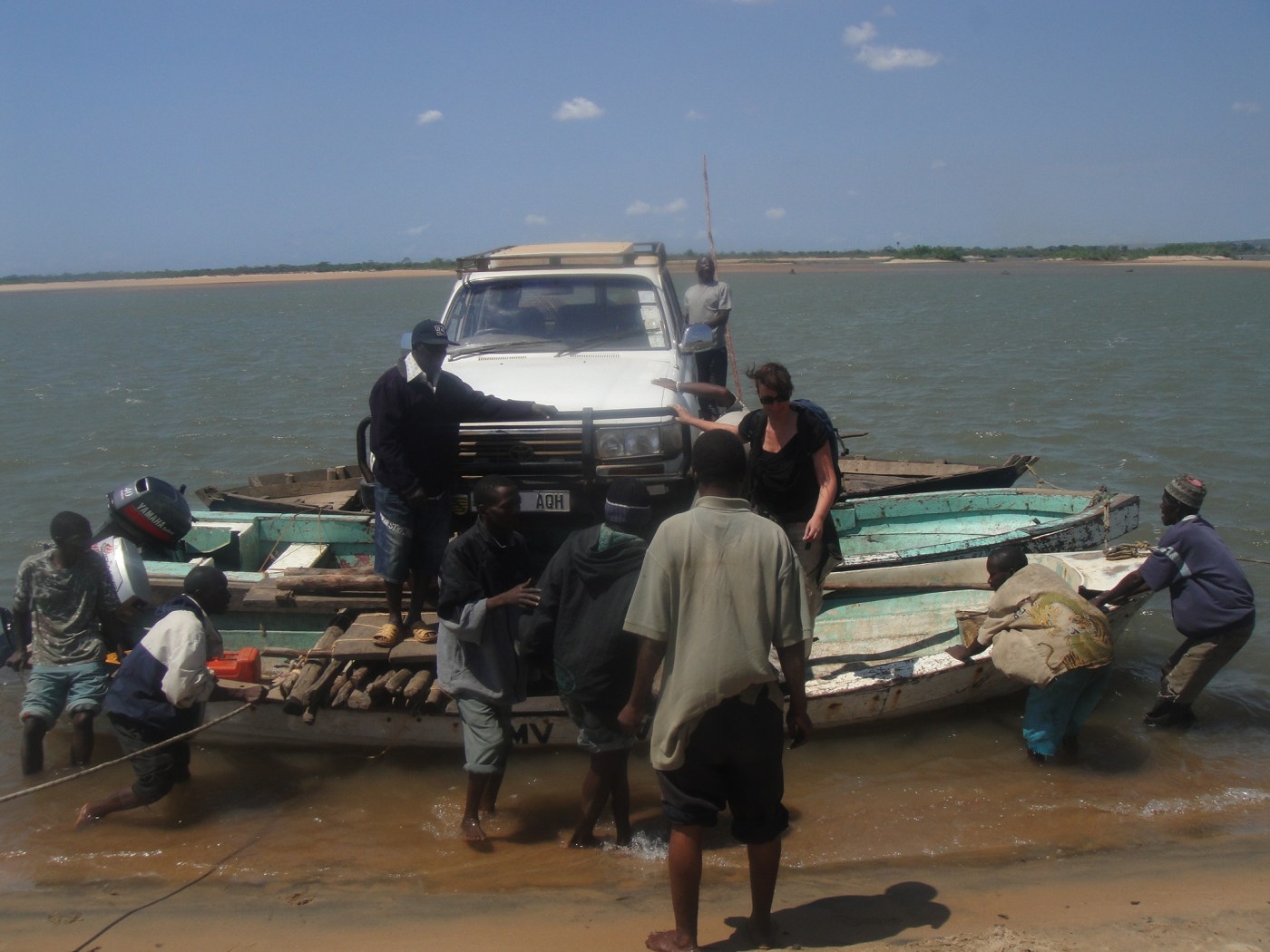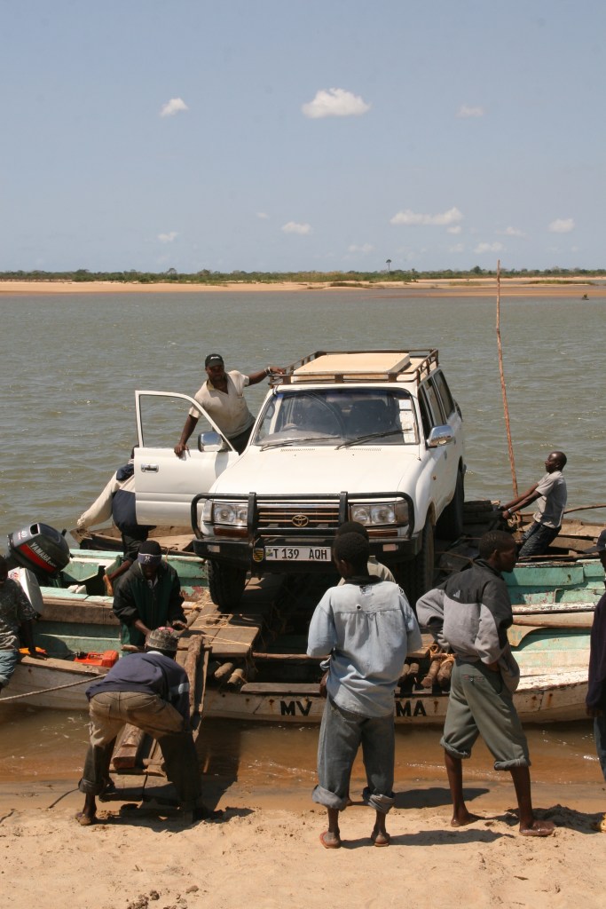 Kurz darauf kamen wir an die Grenze bzw. die Ausreisestation von Mosambik und wurden mit der Frage überrollt: Wo wir denn hinwollten? Na, nach Tansania, wohin denn sonst? Noch so ein Punkt, wo wir hätten stutzig werden müssen. Aber auch hier waren unsere Gehirnzellen noch im Schlafmodus und so ging es die letzten 3 km zum Fluss. Dort angekommen, informierte uns erstmals unser Superman-Problemlos, dass die Autofähre vor einigen Monaten gesunken ist und eine neue Fähre nicht da ist und wir somit noch nicht so genau wissen, wie wir über den verdammt breiten Fluss kommen sollen. Alles klar, alle wussten es schon vor uns, außer wir. Ich kam mir kurzzeitig, wie die seit Jahren betrogene Ehefrau vor, die keine Ahnung von dem Offensichtlichen hatte. Doch Superman-Miststück Osman hatte natürlich schon einen Plan. Nur war ich mir nicht sicher, ob dieser mir gefallen würde.