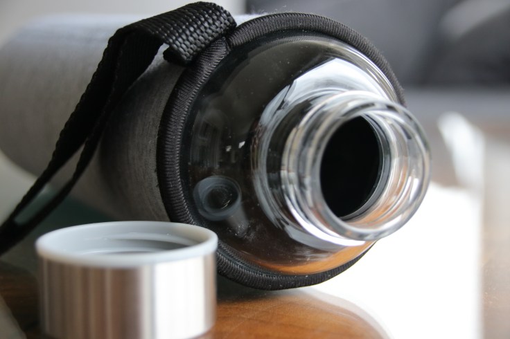 Nun mussten wir nur noch ran an die schlechten Gewohnheiten. Also fingen wir mit meiner Flaschenannahmestelle im Auto an. Die Plastikflaschen mussten weg. Zuhause trinken wir ja schon alles wichtige aus der Glasflasche: Wein, Bier, Schnaps, Whisky und auch gelegentlich Wasser aus dem Hahn. Also brauchte ich nun noch die passende Wasserflasche für meine täglichen Autofahrten oder die Familienurlaubsfahrten, wo gleich mal gerne 5-10 Flaschen anfielen.