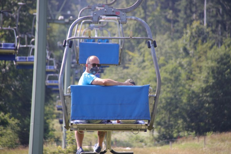Heute entdeckten wir unterwegs eine Sommerrodelbahn und im allerletzten Blickwinkel auf der Beifahrerseite erspähte ich sogar noch einen riesengroßen Parkplatz. Doch da war es schon zu spät. Aber es kam noch besser, denn wir konnten nach nur 5 Kilometern tatsächlich mal wenden, um auch dahin zurückfahren. Also stand unserem Glück auf der Sommerrodelbahn nichts im Wege. Es gab sogar zwei Abfahrten zur Auswahl: eine lang gestreckte Gemütliche und eine steile Aufregende. Natürlich mussten wir als Urlaubstester beide Varianten ausprobieren und so ging es erstmal mit dem Lift hoch auf den Berg zum Startpunkt der Gemütlichen. Gemütlich hin oder her, ich hatte das Gefühl in der schlimmsten Abfahrt ever festzustecken, denn hier musste man wirklich bremsen um nicht im hohen Bogen aus der Bahn zu fliegen. Von wegen gemütlich, eher lebensgefährlich.