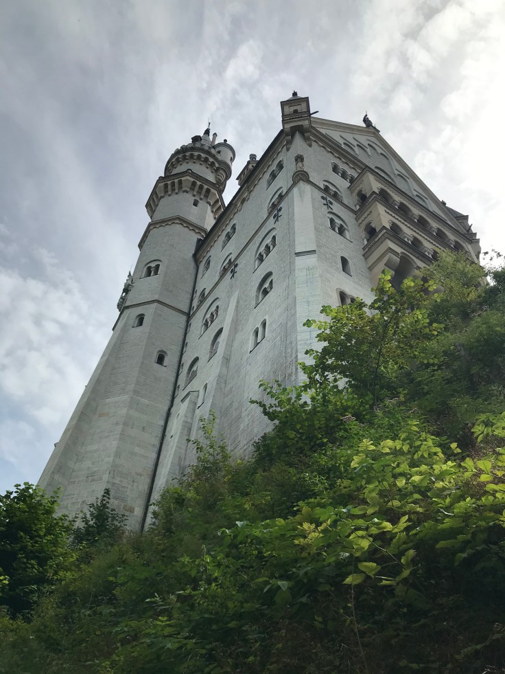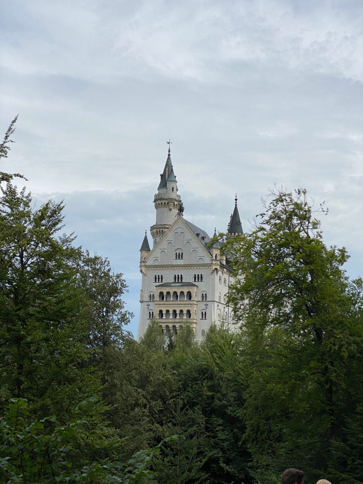 Wenn man schon in SCHWANgau am SCHWANsee ist, ist eines verpflichtend: man muss nach NeuSCHWANsee und sich das Schloss ansehen. Nun hatte ich ja sofort, als wir diese Route geplant haben, erkannt, dass ich mich noch vor den Zeltplätzen dringend um ein Ticket für das Schloss kümmern muss. „Erkannt“ heißt in diesem Zusammenhang nicht gleich „geglückt“, denn dank Corona dürfen auch hier nur reduzierte Personenmengen rein und diese reduzierten Personenmengen hatten offensichtlich ihre Tickets schon vor Corona gekauft. Ich ging leer aus, genauso wie die tägliche Million Japaner, die zur Zeit NICHT hier sind. Aber von so einem Rückschlag lassen wir uns am Wandertag nicht ärgern, denn wie gestern schon aus der Luft festgestellt, ist das Schloss auch von Außen sehr sehenswert, verkitscht.