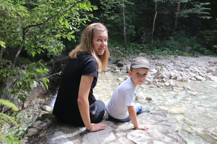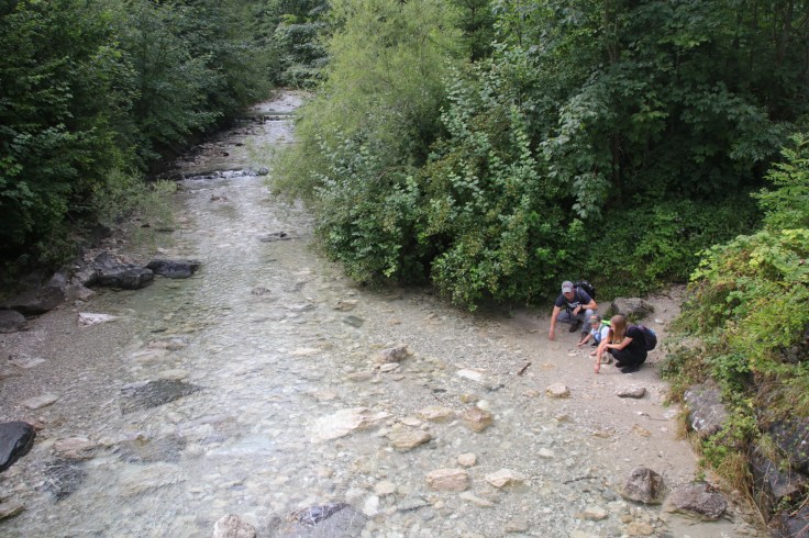 Also wanderten wir los Richtung Schloss durch die Pöllatschlucht mit der, die, das Pöllat und zahlreichen Wasserfällen immer bergauf. Da es heute früh kurz geregnet hatte, hatten wir tatsächlich mal wieder lange Hosen an und sogar eine vorsorgliche Regenjacke. Aber schon nach dem ersten Kilometer wurde die Jacke verbannt, die Sonnenmilch aufgetragen und die Hose verflucht. Wenn so eine Vorgewitter-Stimmung ist, klebt so eine Jeans einfach sehr unangenehm an einem und es wird nicht besser, wenn man dazu noch ins Schwitzen gerät.