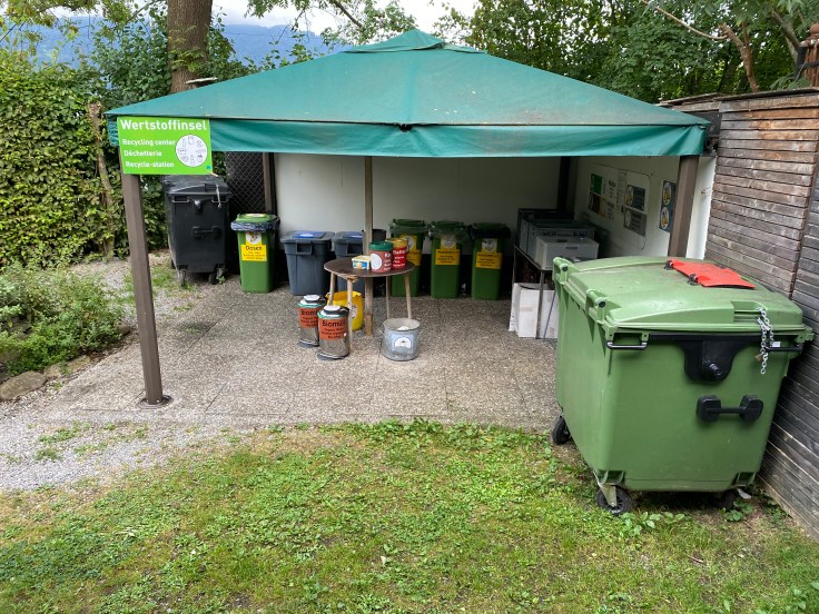 Nach nur 2 Stunden kamen wir im Camp Mexico an und waren wirklich begeistert. Ruhe, keine Dauercamper, viel Platz und halt je 2 Toiletten für Männlein und Weiblein. Aber ich glaube, Swen gefiel die Ruhe so sehr, dass das 3,4 Minuten-Problem sich quasi in Luft aufgelöst hatte. Dafür gibt es hier ungelogen 20 verschiedene Behältnisse für die Mülltrennung inklusive einer langen Liste, was wo rein kommt. Ich bin verwirrt. Soll ich mir jetzt 20 Müllbeutel in den Camper hängen, um alles richtig zu trennen, oder gehe ich wegen jedem Kronkorken nun zur Werkstoffinsel? Ich finde das ja eigentlich gut, sehe mich aber nun ständig zwischen Wohnwagen und Werkstoffinsel hin und her rennen, wobei ich jedes mal zurückrenne um erst einmal nachzulesen, was wo rein kommt. Aber so hat jeder Platz seine Vor- und Nachteile und die Vorteile überwiegen hier eindeutig.