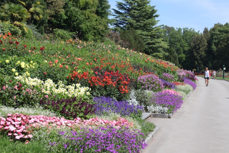 Ja, hier gab es Blumen in Hülle und Fülle, doch zuerst blieben wir am Kinderspielplatz hängen und ich wünschte ich wäre nochmal Kind. Georg zog sich einfach aus bis auf die Buxe, ignorierte die Hinweisschilder bzgl. des Badeverbotes (kann ja schließlich noch nicht lesen) und nach der Abkühlung wird einfach auf die Buxe verzichtet. Schon mal einen Erwachsenen in dieser Situation erlebt? Wir machen nichts von all dem. Maximal ziehen wir Schuhe und weiße Tennissocken aus und gehen mit den Füßen baden. Aber nur kurz, denn dann lesen wir die Hinweisschilder und nehmen die Füße wieder raus aus dem Wasser. Ich wünscht ein so unbeschwertes Kind-Sein wäre uns noch gegeben. So stehen wir nur am Rand, rufen laut „Georg“ um zu ermahnen, aufzufordern oder hinzuweisen. Wie spießig wir doch sind.