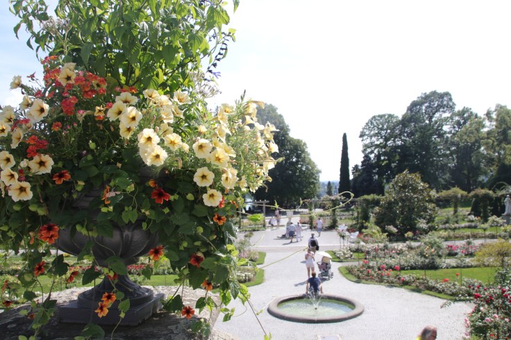 Und danach ging es auf die Blumeninsel Mainau und anhand der Parkplatz-Auslastung konnte man deutlich die Auswirkungen von Corona sehen. Normalerweise hätten sie mich 13.30 Uhr müde am „für heute ausgebucht“-Schild ausgelacht, aber so hatten wir Tickets und konnten quasi in der ersten Reihe parken. Was würde uns hier erwarten? Blumen für all meine Vasen? Neue Garten-Gestaltungsideen?