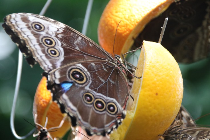 Leicht gestärkt und trotzdem stark geschwächt zogen wir noch ins Schmetterlingshaus ein. Mit Maske bei äußerlichen 30 Grad und gefühlten 50 Grad im Schmetterlinghaus können wir ganz froh sein, dass wir dies überlebt haben. Ich war kurz davor mich einzupuppen und zum Schmetterling zu werden. Aber so habe ich nur geschwitzt und fotografiert.