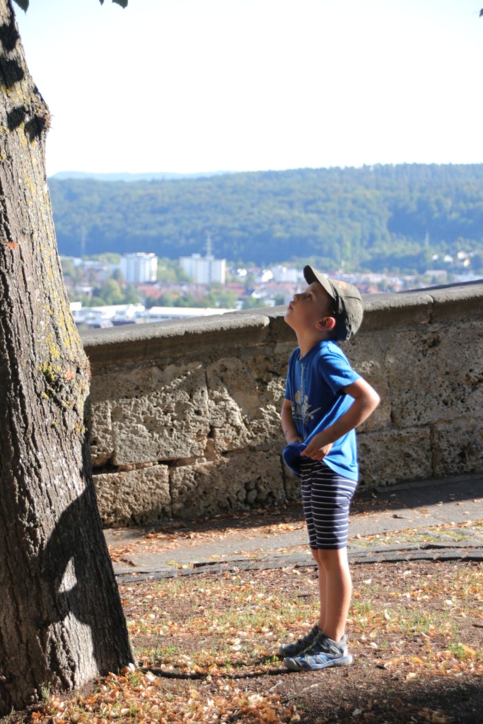 Gegen 37 Grad kamen wir in Tübingen genau am Neckar an und parkten unseren Langen unter dem einzigen Baum. Okay, es ist ein Apfelbaum und ich erwarte eine stürmische Nacht mit Äpfelmeteoriteneinschlägen, aber es gab Schatten und morgen zum Frühstück sicher Apfelmus. Bei den aktuellen Temperaturen weigerten wir uns einstimmig in die Stadt zu laufen und nahmen das Auto.