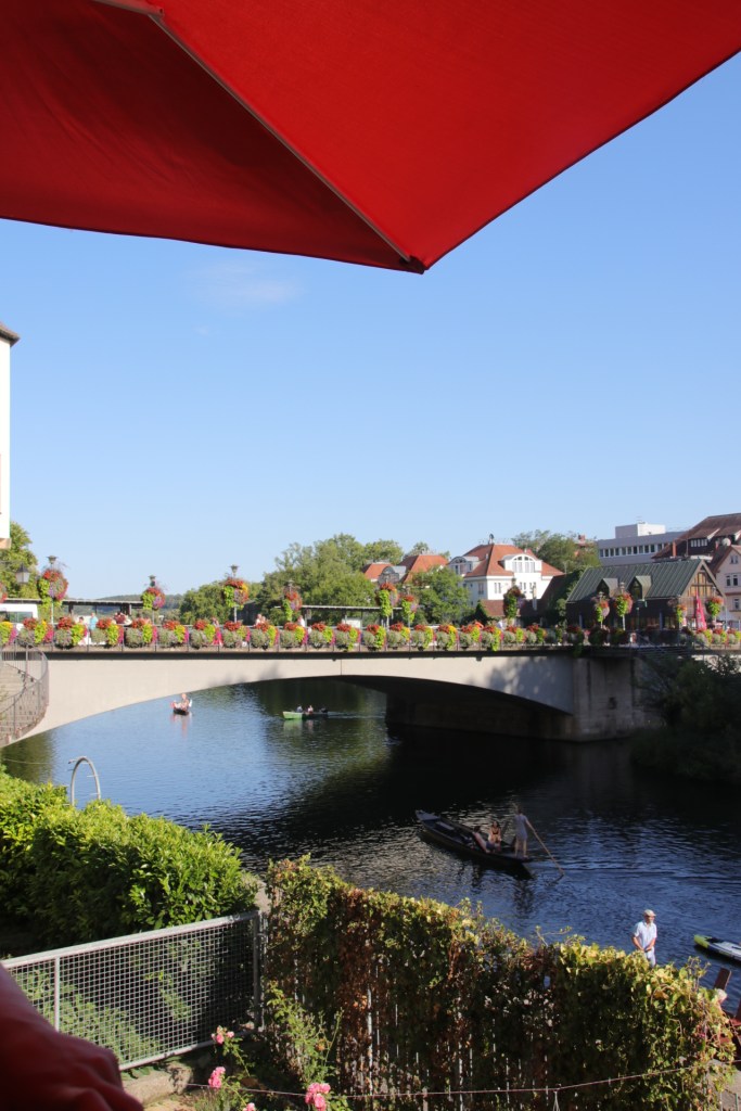 Und die Stadt Tübingen gefällt uns ausgesprochen gut. Eine wundervolle Altstadt mit zahllosen kleinen Gassen, mal bergauf, mal bergab und mal am Neckar entlang. Die Universtitätsstadt strahlt trotz der Historie und den wunderschönen alten Häusern eine lebendige Atmosphäre der Studenten aus, die überall die Stadt beleben.