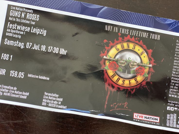 Und so führe ich auch noch, wie viele andere, eine Konzert-Bucket-List und konnte in den letzten Jahren einige von den Listenkünstlern abhaken, wo ich schon dachte der Zug ist für immer abgefahren. So waren wir 2018 bei Guns N’Roses in Leipzig und ich durfte ungehemmt The Slash anhimmeln. Bei Axel konnte ich nicht so richtig hinschauen, weil dieses Bild so gar nicht mit meinen MTV-Andenken zusammenpasste. Aber stimmlich und stimmungsmässig war es ein Hochgenuss.