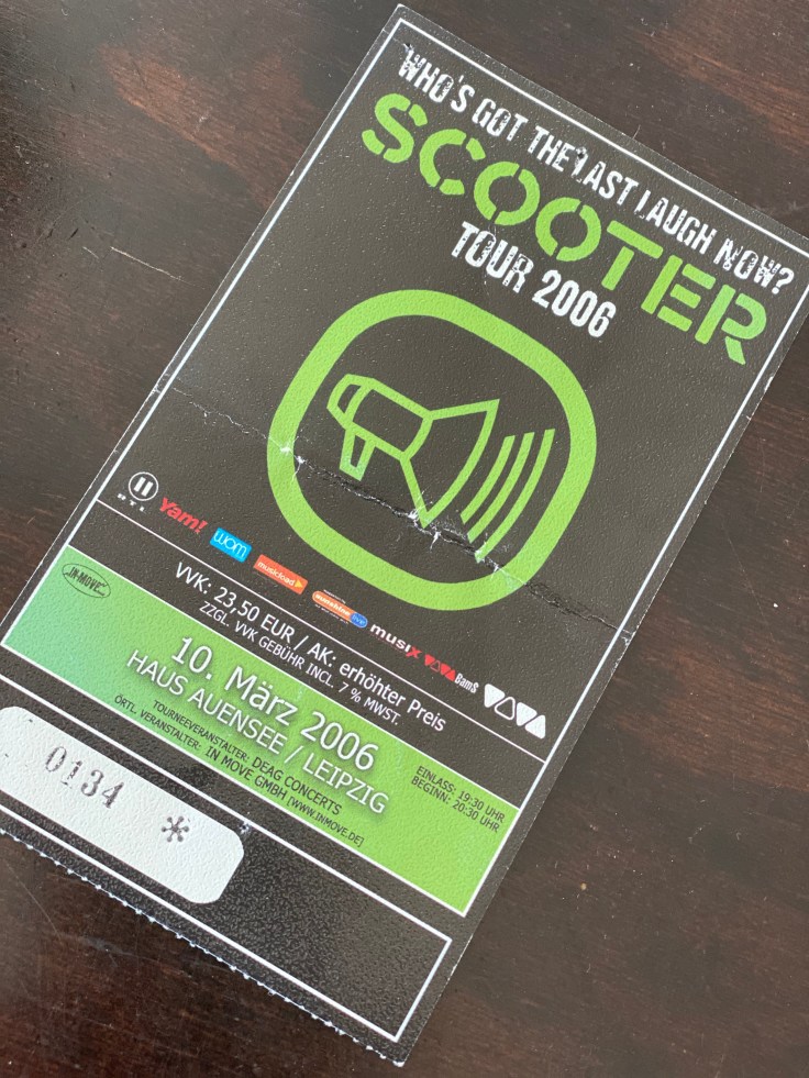 Nach dem Ticketkauf kommt die Zeit vor dem Konzert. Es beginnt ungefähr drei Tage vor Konzertbeginn, wenn ich meine Playlist komplett auf den erwarteten Künstler umstelle und alles rauf und runter höre. Im besten Fall ist das eine sehr schöne Phase zur Einstimmung und Textfestigung, aber als ich 2006 Scooter besuchen musste (Geschenk für eine Freundin), war es eher so eine Art OP-Vorbereitung mit Einlauf. Verschiedene Textzeilen bereichern zwar seitdem meinen Wortschatz, aber ich bekomme sie auch nie wieder da raus und darunter leidet meine Kommunikation. „Harder, faster, Scooter“ ist nicht in jeder Situation passend und alles andere überlasse ich jetzt mal Eurer Fantasie.