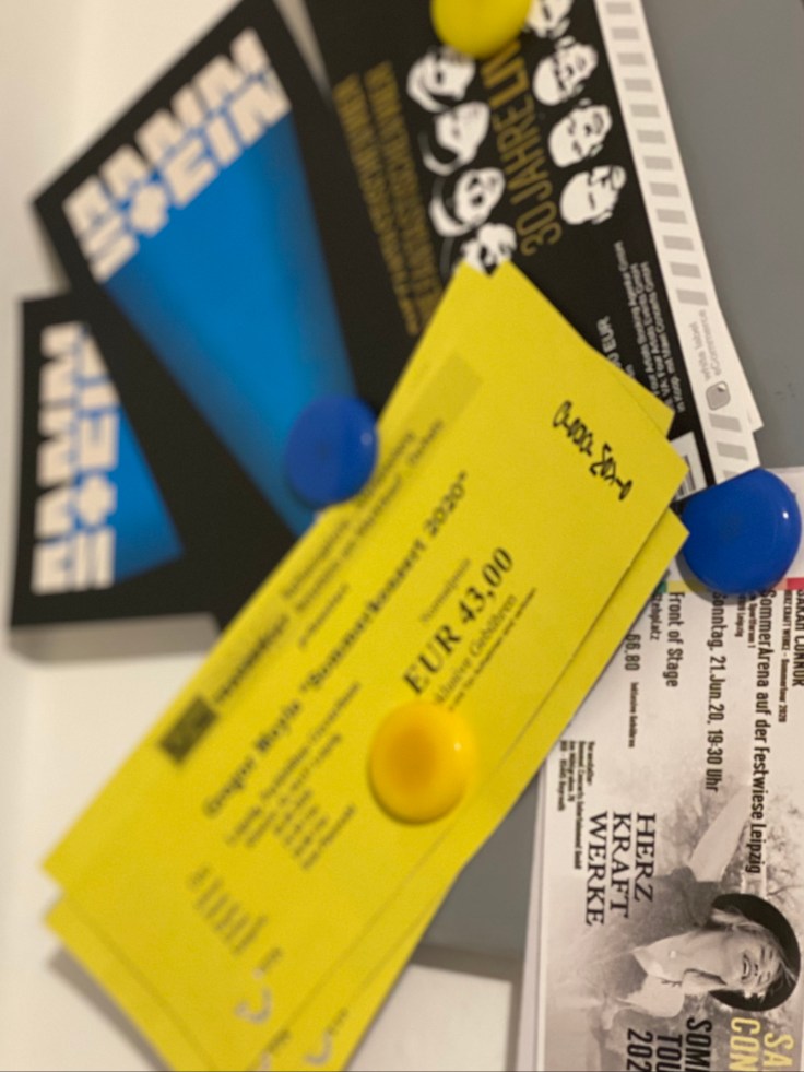 Es ist aber nicht so, dass es nur die Musik ist, die mir fehlt. Dann würde die Konserven-Beschallung ja helfen. Nein, es sind die vielen kleinen Dinge, die mit dem Konzert im Zusammenhang stehen. Es fängt an mit dem Ticketkauf. Ich erinnere mich noch an so manche Challenge. Zum Beispiel auf der Jagd nach Rammstein Karten. Nach 3 misslungenen Versuchen versuchte ich es 2019 an 5 elektronischen Geräte parallel, auf der Jagd nach Tickets und hatte fast Knoten in den Fingern. Aber als dann plötzlich zwei Tickets in MEINEM Warenkorb lagen, fühlte ich mich, wie ein Lottogewinner. Und was ist nun? Wegen Corona verschoben. Schöner Mist. Inzwischen habe ich sogar eine Corona Gedächtniswand mit vier verschobenen Konzerten und ich befürchte langsam, dass ich mir diese Wand die nächsten 11 Jahre anschauen muss.