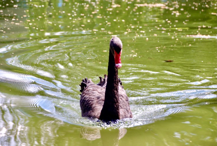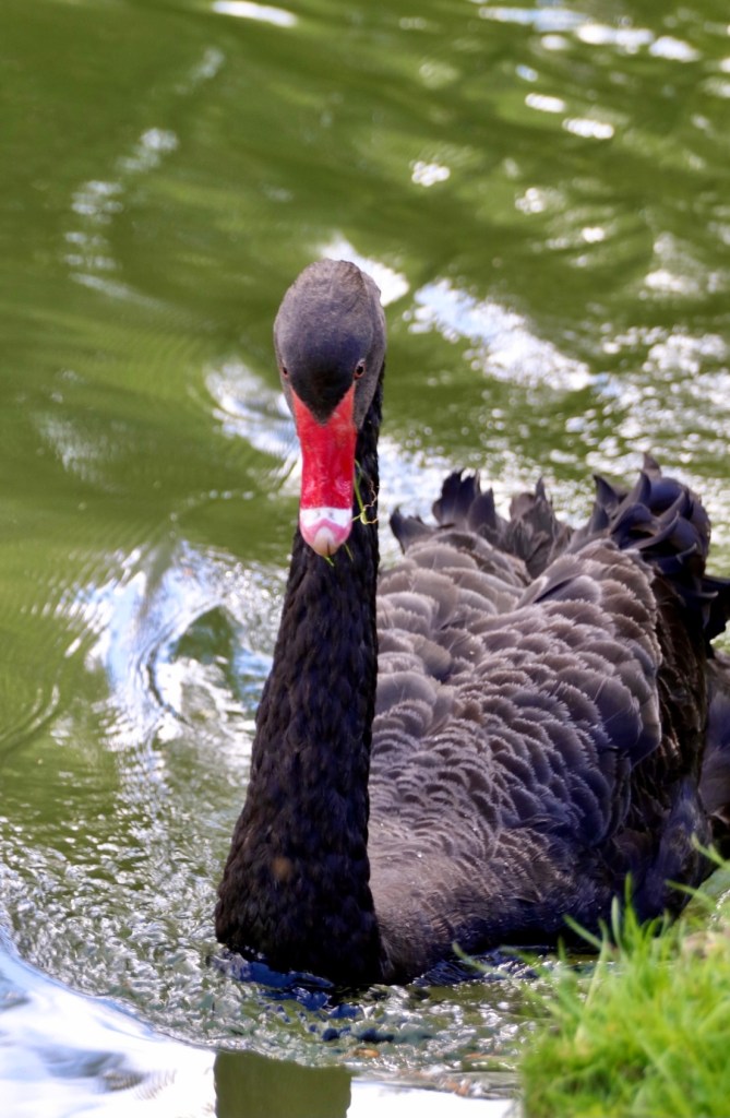 Solche Kurparkanlagen sind ja in der Regel sehr schön anzusehen, ein Kurhaus, eine wunderschöne Parkanlage und ein fotogener Teich mit Federvieh. Hier lockte nun ein besonderes Federvieh mich an das Ufer. Ein wunderschöner schwarzer Schwan, elegant und geschmeidig und wirklich, wirklich fotogen. Aber DIESER Schwan hatte es auf MICH abgesehen. Denn kaum hockte ich mich an das Ufer um aus sicherer Entfernung mit meinem Teleobjektiv den Schwan auf Polaroid zu bannen, schoss dieser ungebremst auf mich zu. Zuerst dachte ich: Okay, er will sich in Pose schmeißen und ist ganz ein Profi. Aber falsch gedacht, dieser schwarze Schwan hasst offensichtlich Fotografen und so wurde aus seinem Schwanenhals ein ein Meter fünfzig langer Giraffenhals in schwarz und schoss Richtung Fotoapparat und biss sich in meinem Knie fest. Nun mal ehrlich, ich hatte noch nicht einmal ein gutes Foto gemacht und schon wurde ich attackiert? Mit blutigem Knie, naja fast, schoss ich zurück und wollte wieder genügend Meter zwischen mich und diese Diva bringen. Aber der Schwan verfolgte mich, ließ mich keinen Moment aus den Augen. Jedes Mal wenn ich an irgendeiner Ecke des Sees in die Fotografen-Hocke ging, schoss der BlackBeauty sofort in meine Richtung und brachte mich zum rennen. Zur Freude meiner restlichen Familie, die sehr viel Spaß hatten. Ich dagegen war gestresst von einem Vogel, der maximal die Größe eines 3 jährigen aufbrachte, mal abgesehen von diesem Teleskop-Hals. Der wog doch höchstens soviel wie ne gute Weihnachtsgans und hatte noch nicht mal so viele Zähne wie ein Piranha und trotzdem hatte ich Schiss und ergriff die Flucht. Defensivspieler.