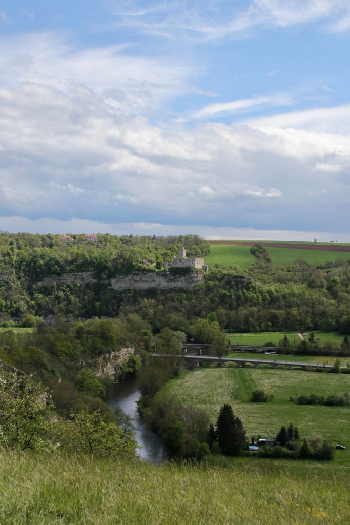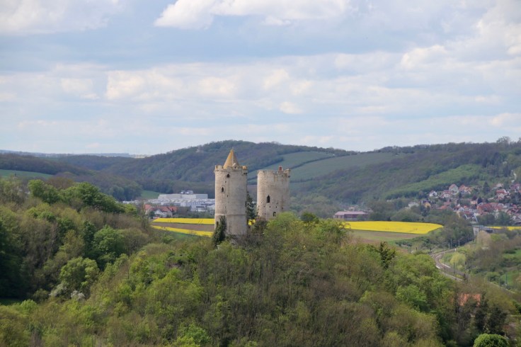 Die Halbzeitpause unseres Endspiels haben wir dann an den beiden Burgen auf der Strecke verbracht und einfach mal die Aussicht und Ruhe genossen. Natürlich hatten wir wieder unser Picknick dabei und starteten die Selbstversorgung. Wir mit Wasser, Äpfeln und Brötchen mit Salami und Käse sahen allerdings ziemlich blass aus gegen unsere Nachbarn mit einer Flasche Saale/Unstrut-Wein oder die anderen Beisitzer mit dem Schnäpschen in der Flasche. Das ist dann wohl auch der Grund, warum wir in dieser ruhigen Phase des Spiels keine Punkte gegen die Natur erzielen konnten.
