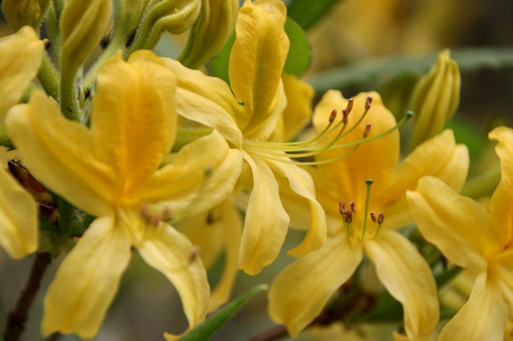 Frisch geknipst konnten wir dann auch auf eine ordentliche Wanderung durch den ganzen Parkt starten. Hier gab es natürlich noch mehr zu sehen. Erstens gab es herrliche Wälder aller Art und eigentlich keine anderen Wandersleut und zweitens machte der Park seinem Namen alle Ehre, den die ersten Rhododendren standen wunderbar in Blüte. Ein herrlicher Anblick. Georg übernahm den Erkundschafter der Wege und hielt dank der Wettervorhersagen immer Ausschau nach einem trockenen Unterstand und Swen freute sich über das heuschnupfige Kribbeln in der Nase. Ein für alle erquicklicher Ausflug. Und nein, dieses Mal sind wir nicht nass geworden, wenn man mal von meinen Freudentränen absieht.