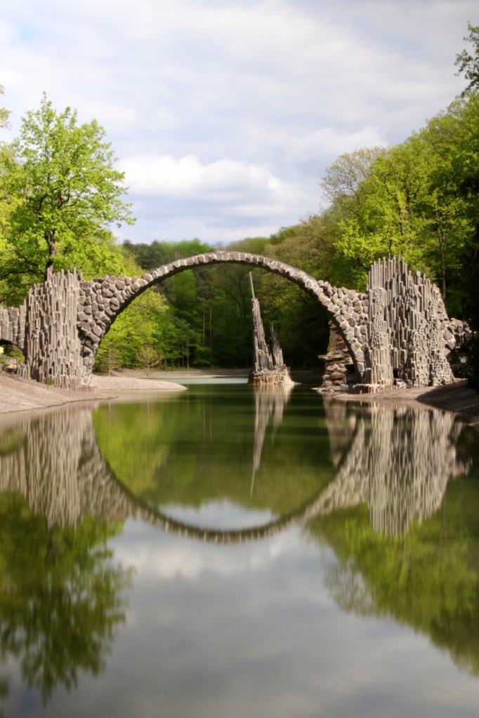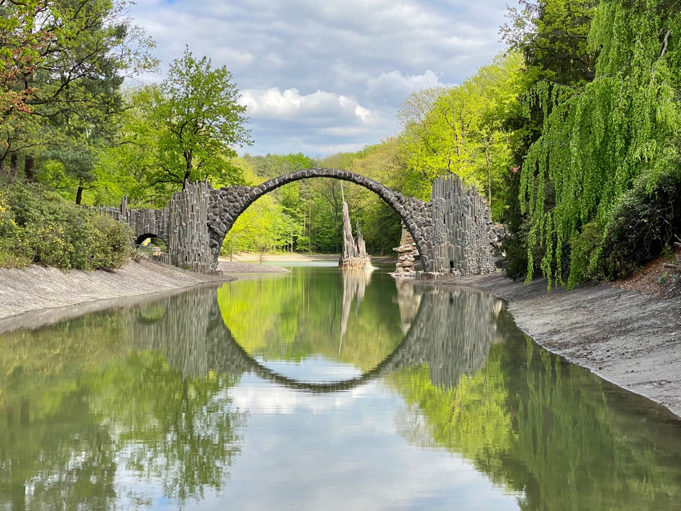 Aber trotz dieser sehr direkten SMS konnte mich nichts, nein gar nichts davon abhalten, die Radotzbrücke im Rhododendronpark in Kromlau zu fotografieren. Seit Jahren stand dieses Motiv auf meiner Bucketlist und bei der Planung der Tour war ich irgendetwas zwischen aufgeregt und unheilschwanger. Denn die Brücke und der See waren bis vor ein paar Tagen noch eingezäunt und der See führte kein Wasser. Ich richtete mich also auf mein Sehnsuchtsmotiv ohne Schminke ein. Aber nun komme ich zurück zu diesem wunderbaren Maiwetter. Denn der Regen der letzten Tage hatte den See innerhalb von einer Woche doch endlich etwas gefüllt. Und so bekam ich die Motive, die ich mir erträumt hatte. Danke du tolles, tolles Wetter!