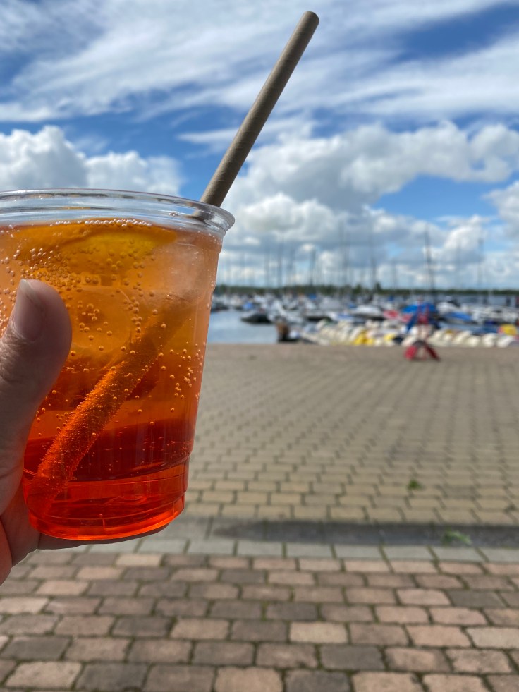 Zurück zum Cossi. Der einzige Vorteil war ja, wenn man Montags da ne Runde dreht, dass man dies alleine, in Ruhe und Entspannung machen kann. Keine Schweißperlen, weil man damit rechnen muss, dass ein Rennradfahrer unseren Sohn umnietet oder man vor lauter Menschenmassen einfach mal auf alles gefasst sein muss. Der See war herrlich ruhig und wir genossen unsere Runde. Ein kleiner Stop am Hafen inklusive Urlaubsstimmungs-Aperolchen und einem Eis musste natürlich sein. So lässt es sich leben. Wir hatten sogar 3,5 Minuten Sonne und genossen diese als wäre es Hochsommer. Die Spatzen und Enten wollten auch etwas von unserem krümeligen Glück haben und bettelten um Kekskrümel.