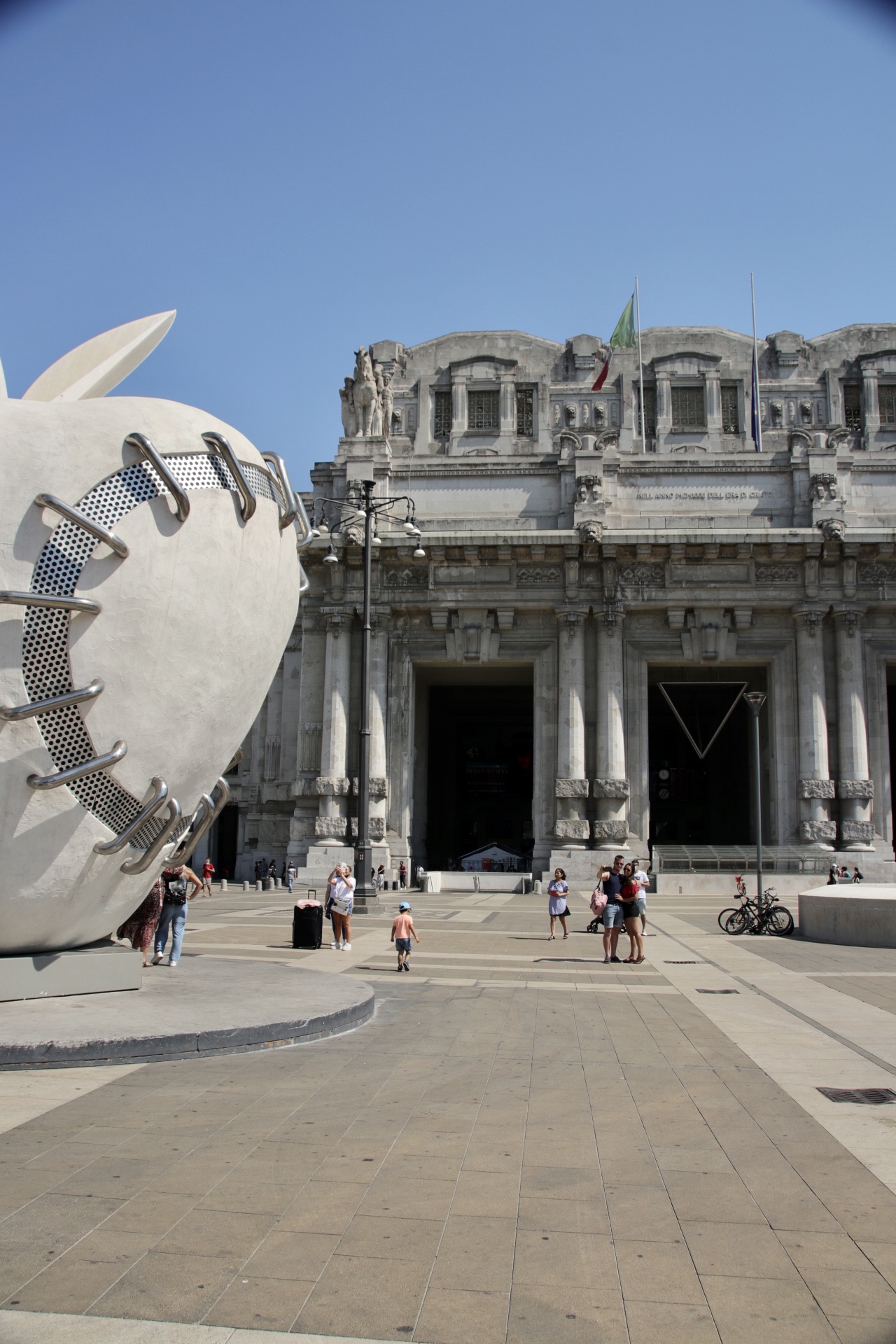 Gegen Abend entschlossen wir uns trotz der Hitze zu einem Spaziergang Richtung Bahnhof und nahmen alles an Abkühlung mit, was Mailand zu bieten hatte. Da waren erst einmal die Schlitze im Boden über Tiefgaragen. Herrlich kühle Luft stieg hier empor und ich hatte fast meinen Marilyn Monroe-Moment, wäre nicht mein Kleid an allen Stellen eine klebende Symbiose mit meinem Körper eingegangen. Und es gab Eis, wunderbares geschmackvolles Eis in allen Geschmacksrichtungen. Dabei spielte es auch fast keine Rolle, dass eine Kuller 3€ kostete. Was kostet die Welt? Und Marmorstufen an den Eingängen zu Banken sind auch sehr zu empfehlen. Ich überlege schon, ob ich einen speziellen Reiseführer „Mailand im Sommer“ schreiben sollte, in dem ich all meine Tipps teilen kann.