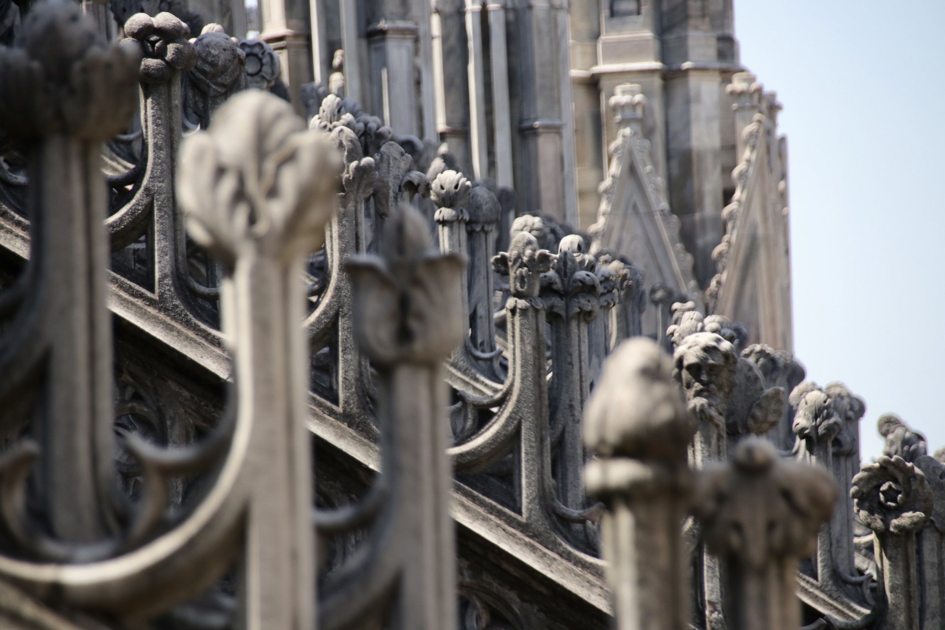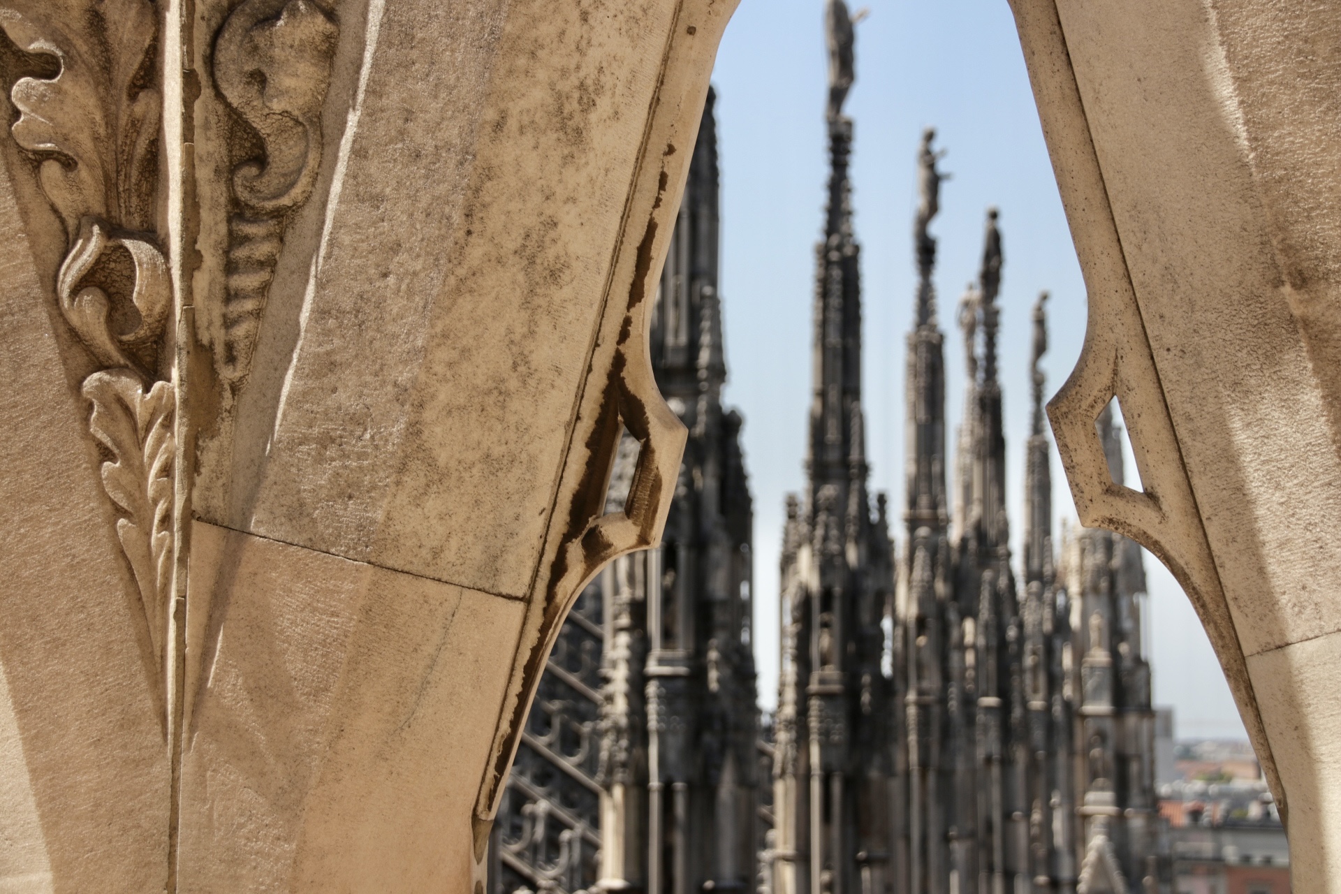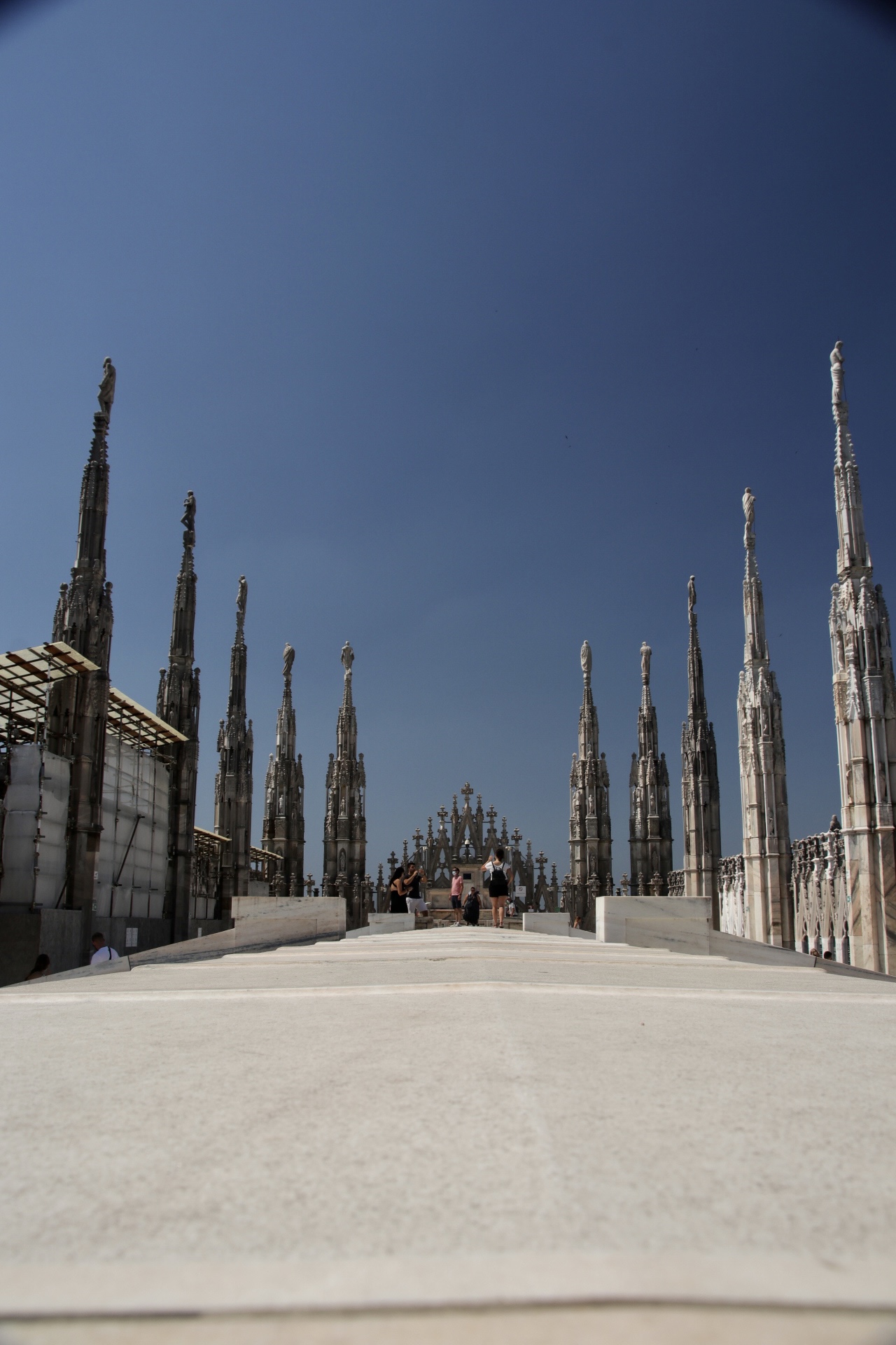 Um den Dom so richtig zu erleben, hatte ich, wie schon erwähnt, auch das Rooftop gebucht. Und damit wir den gesammelten Fahrstuhlkeimen entgehen, hatte ich für uns fleissige Wanderer die Treppenstufen als Aufstiegsvariante gebucht. In der Planungsphase klang das sehr logisch und sinnvoll. In der Mittagshitze war dies eine der schlechtesten Ideen ever. Wir kämpften uns 156 Stufen Richtung Sonne und je näher wir kamen, desto wärmer wurde es. Zwischenzeitlich befürchtete ich von Sonnenwinden gegrillt zu werden. Doch oben angekommen, hatte sich der Aufstieg wirklich gelohnt. Ein fantastischer Ausblick und wirklich ein einzigartiges Gefühl auf dem Dach des Mailänder Doms zu sitzen, während man die letzten Schlucke köstlichen Wassers als kaputter Hydrant ausschwitzt.