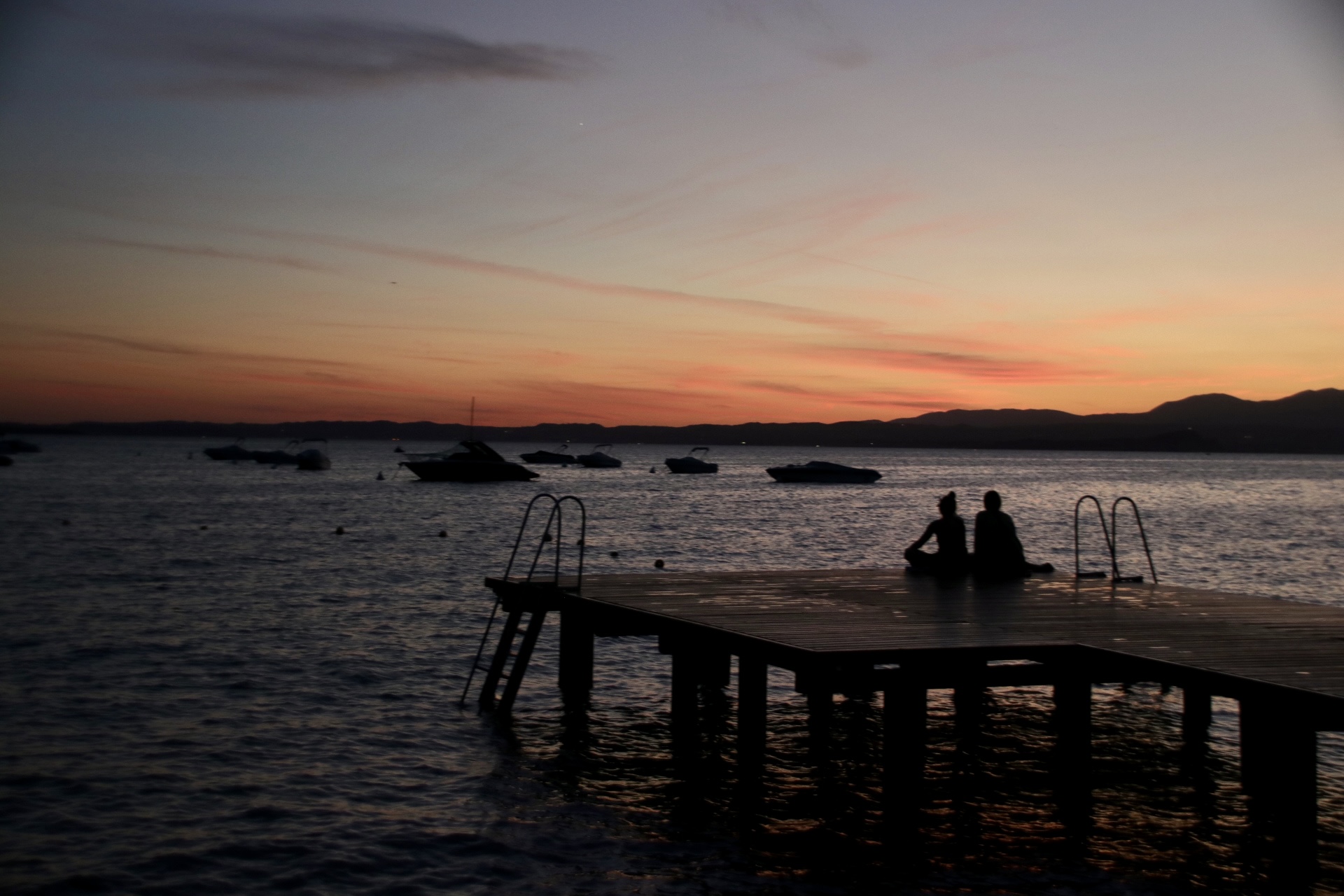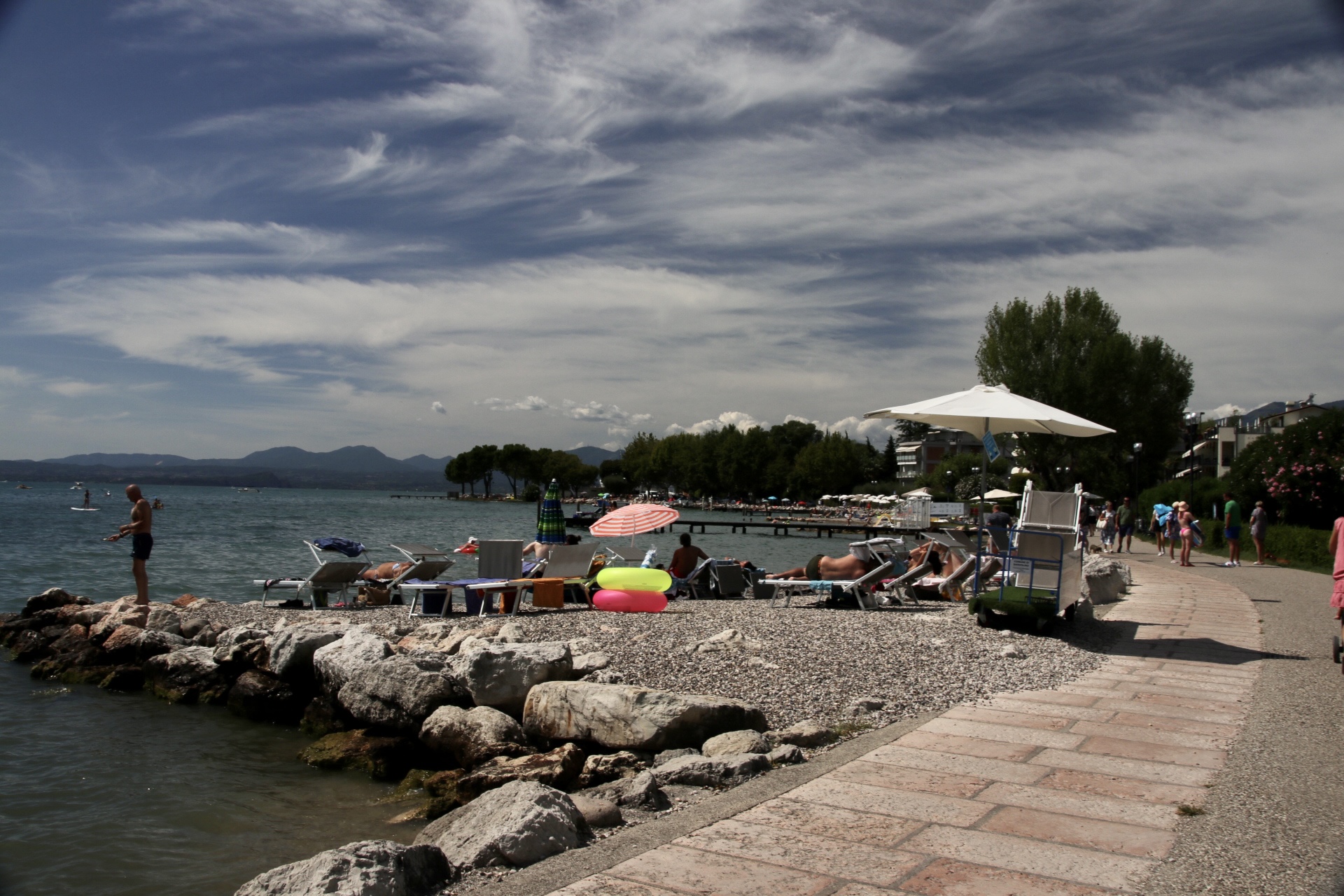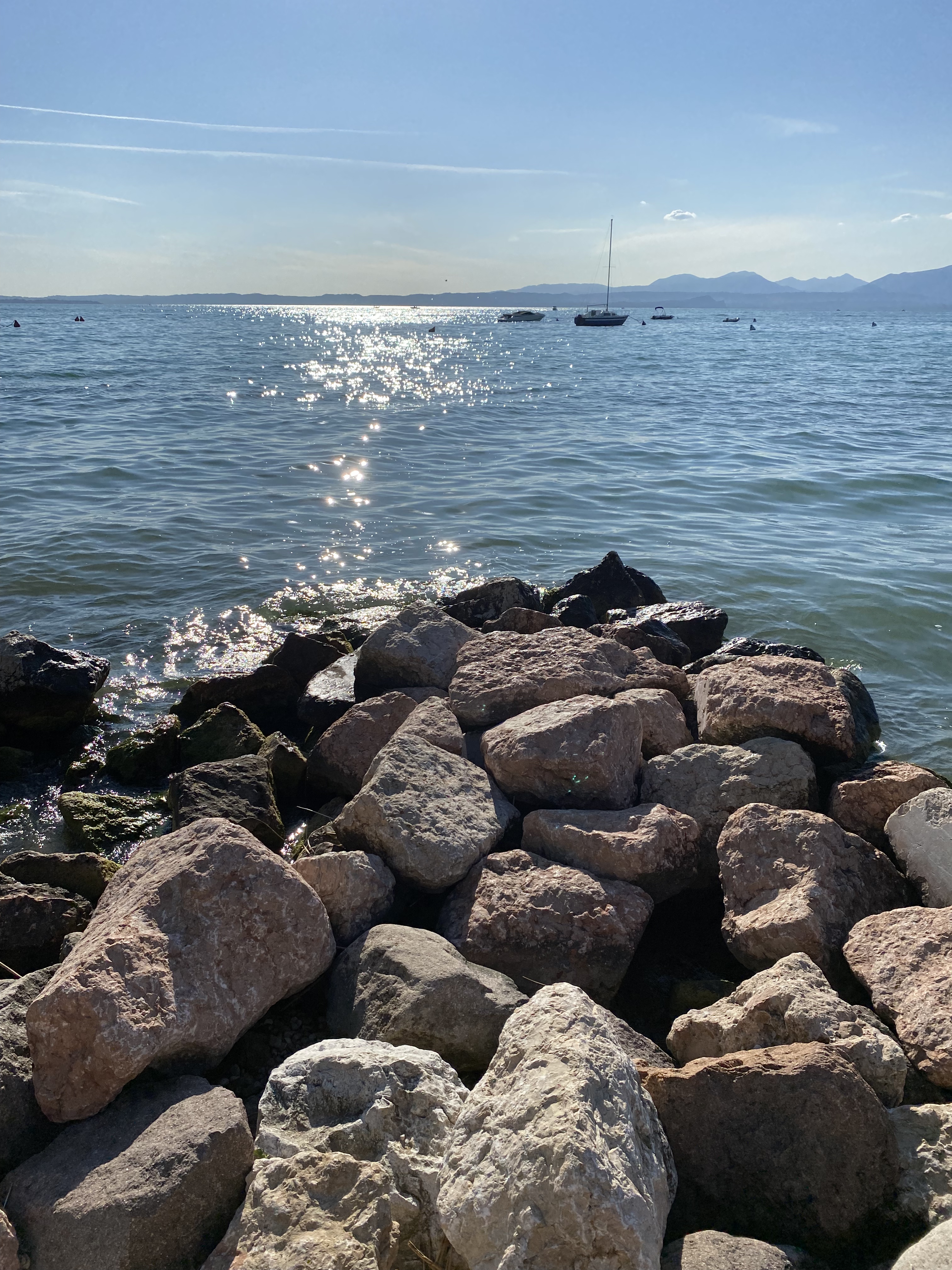 Jedenfalls empfing uns der Gardasee anschließend mit viel Sonne, Hitze und verdammt vielen Menschen. Nicht dass es am Comersee leer war, aber soviele Menschen hatten wir dann doch nicht erwartet. Aber wie unsere Große gleich sagte, war es einfach nur abwechslungsreich und wir machten uns einen schönen Nachmittag und Abend, inklusive Baden im See, a little bit shopping und 20.000 Schritten. Zwischendrin unterbrachen wir unseren Dauerlauf nur durch Essen, Wein, Eis und ein bissl Spritz. Dabei landeten wir in einer Bar, die eine ganze, und sogar dicke Karte voller verschiedener Spritz anbot. Mein Ehrgeiz war geweckt, aber bei der Hitze reichte es nur für einen Pfirsich-Spritz, den ich nur empfehlen kann.