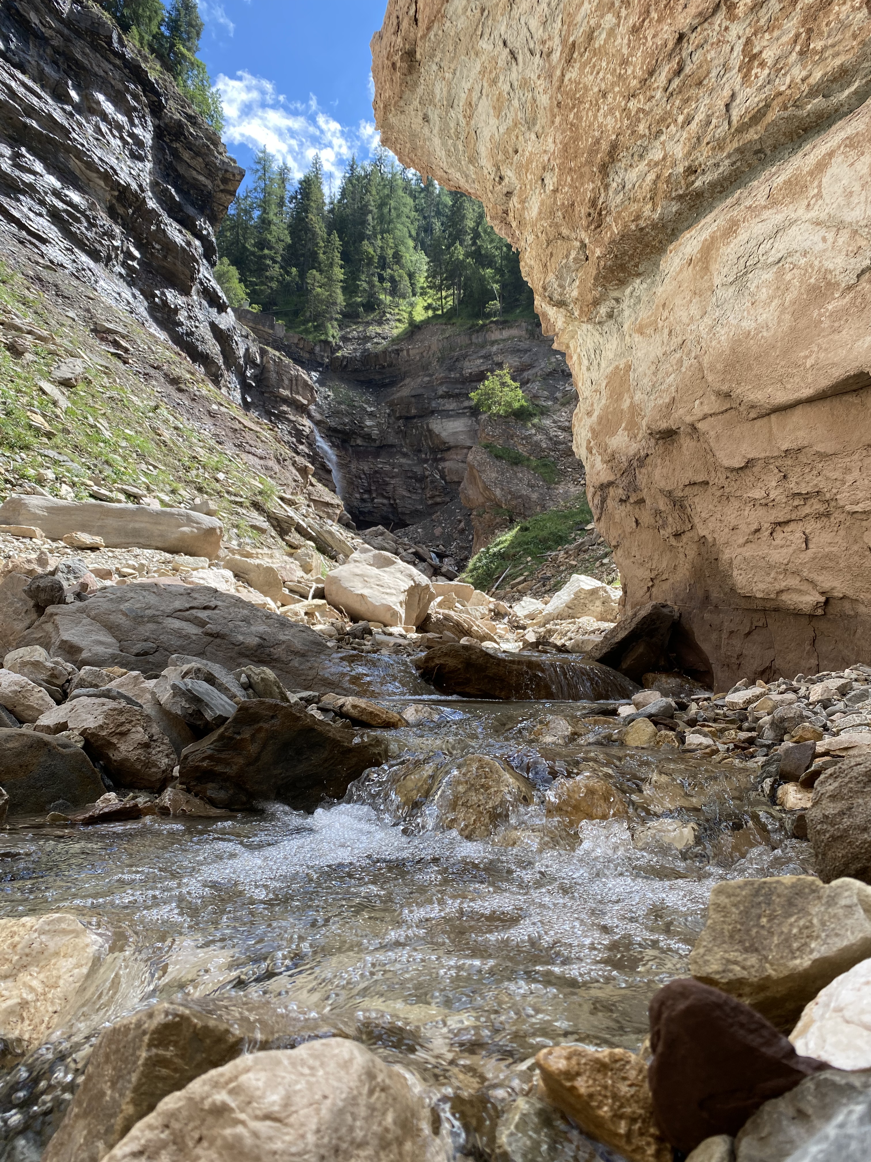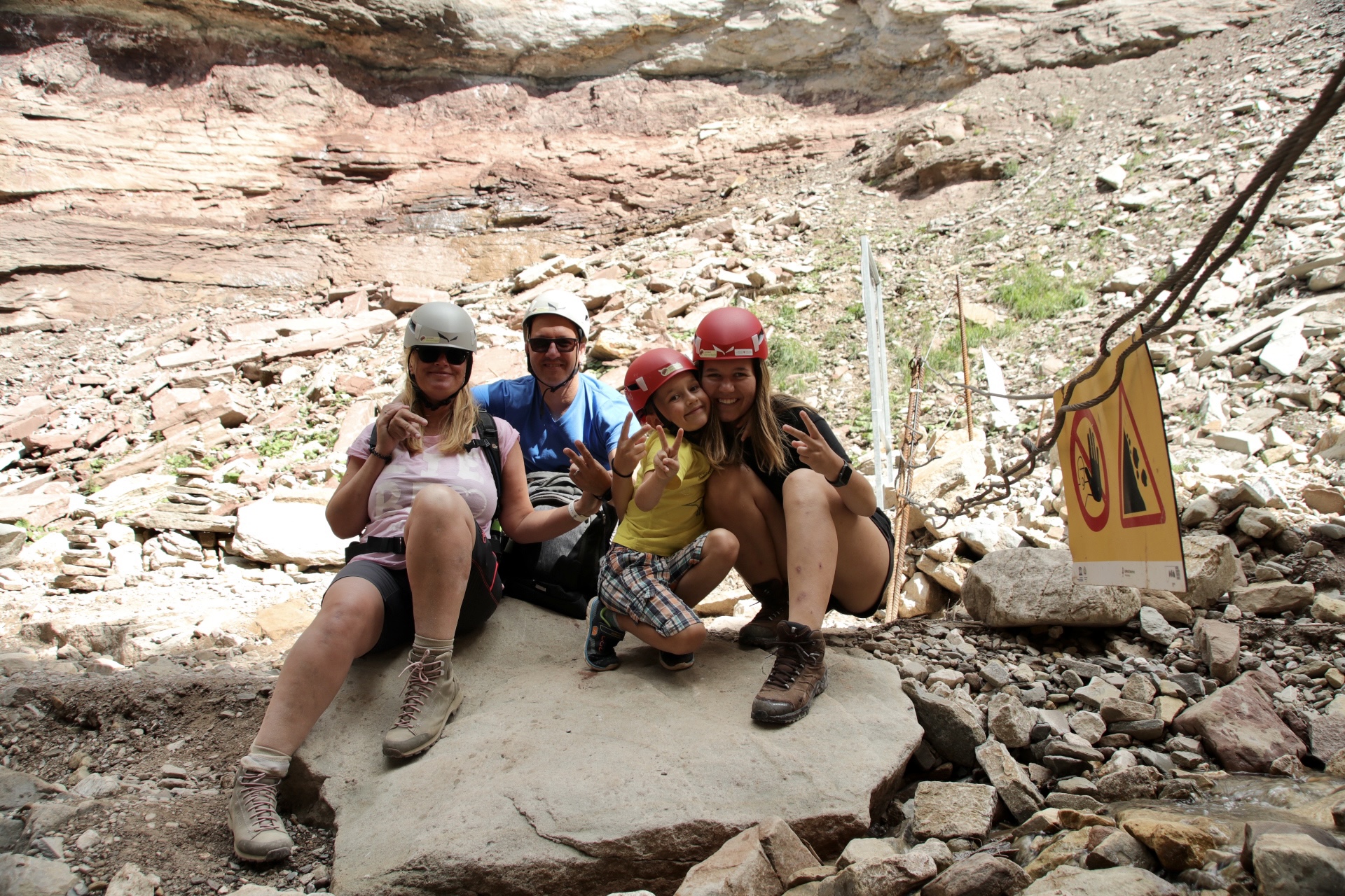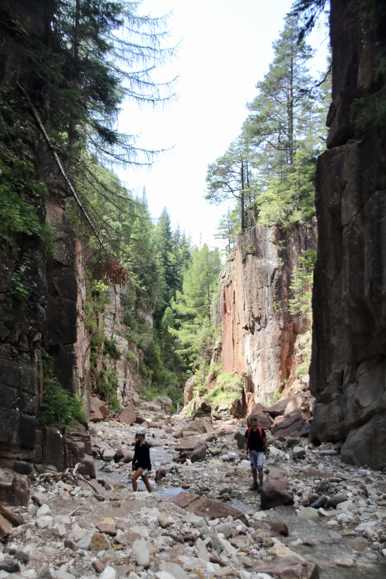 Ab jetzt war ich keine gute Navigatorin mehr für Swen und so verließ er sich lieber auf das Auto. Und natürlich konnten wir auch den heutigen Fahrtag nicht ohne Aktivität durchziehen. Und so hatte ich uns eine Wanderung durch die Bletterbachschlucht südlich von Bozen ausgesucht. Der Vorteil, wir waren nicht von Seilbahnzeiten abhängig. Der Nachteil, um in eine Schlucht zu kommen, geht es verdammt tief um schlussendlich wieder hinauf zu gehen. Geholfen hat für meine Einstellung auch nicht die Helmpflicht, erstens nicht fotogen und ein Frisurenzerstörer und beim Fotografieren immer im Weg. Aber trotz dieser furchtbaren Nachteile war es eine tolle Wanderung und eine beeindruckende Schlucht. An den Wasserfällen durfte ich mich fototechnisch austoben, Georg liebte die Sprünge über den Flusslauf, Pini drehte Video’s, die meist ein „OMG“ von mir enthielten und Swen lobte mehrfach meine Wanderauswahl. Das nehme ich jetzt mal als Lob hin, genauso wie die Tatsache, dass wir es dieses Mal in der vorgegebenen Zeit schafften und uns nicht verliefen. War auch kaum möglich in einer Schlucht mit links und rechts ewig hohen Steilwänden, wo sollten wir schon hin.