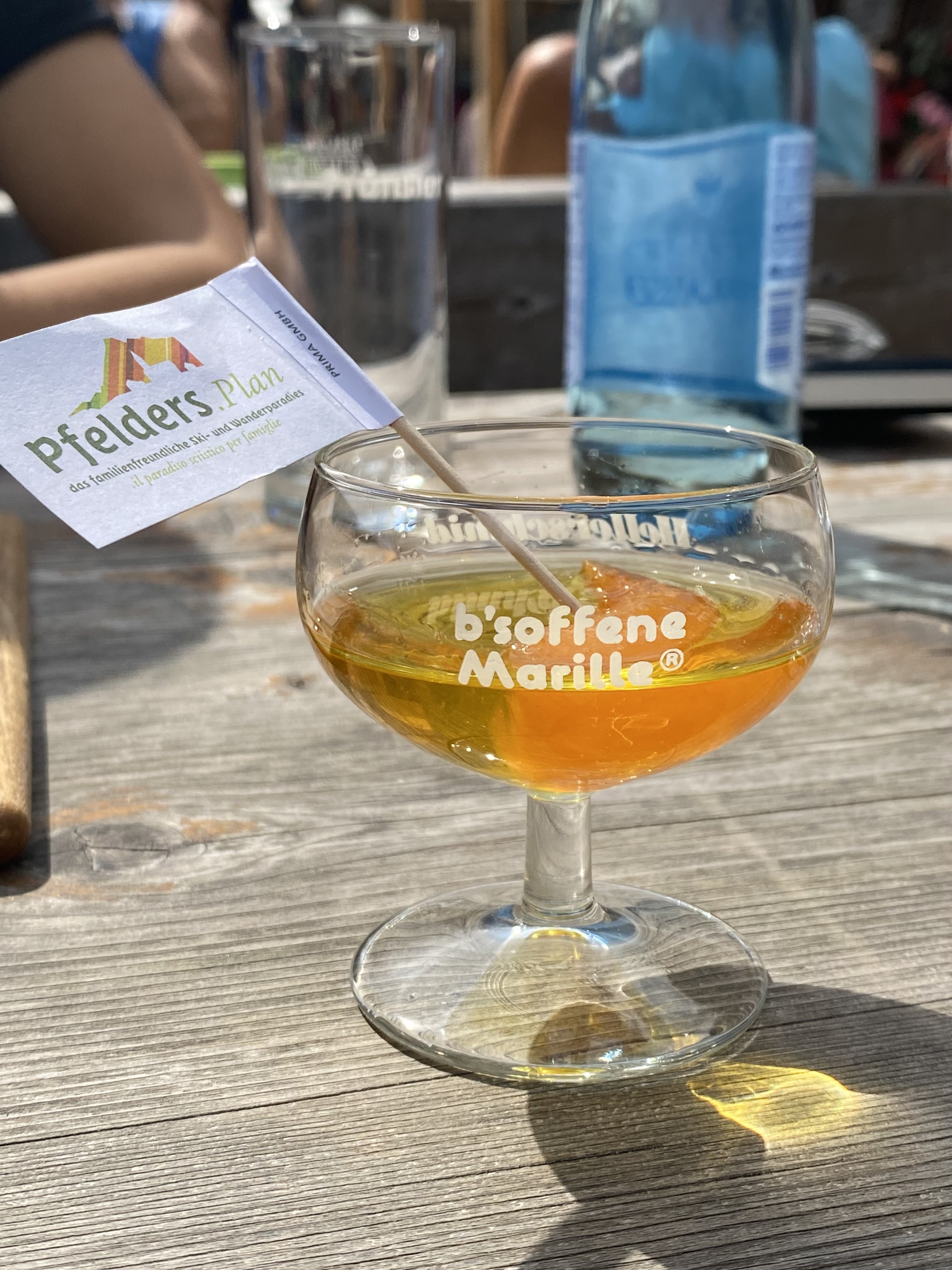 Wir starteten mit dem Grünbodenexpress, welcher uns 400 Höhenmeter ersparte und auf 2.000 Meter über Meeresspiegel starten ließ. Hier ging es zuerst den Panoramaweg entlang zur Faltschnallalm, wo wir erstmals unsere Flüssigkeitspegel auffüllten. Ich liebe ja diese Holunderwasser oder sonstige aromatisierte und gezuckerte Wässerchen. Sehen immer alle noch wie Wasser aus und sind in Wahrheit Kalorienbomben. Aber das eigene Gewissen lässt sich so wunderbar veralbern.