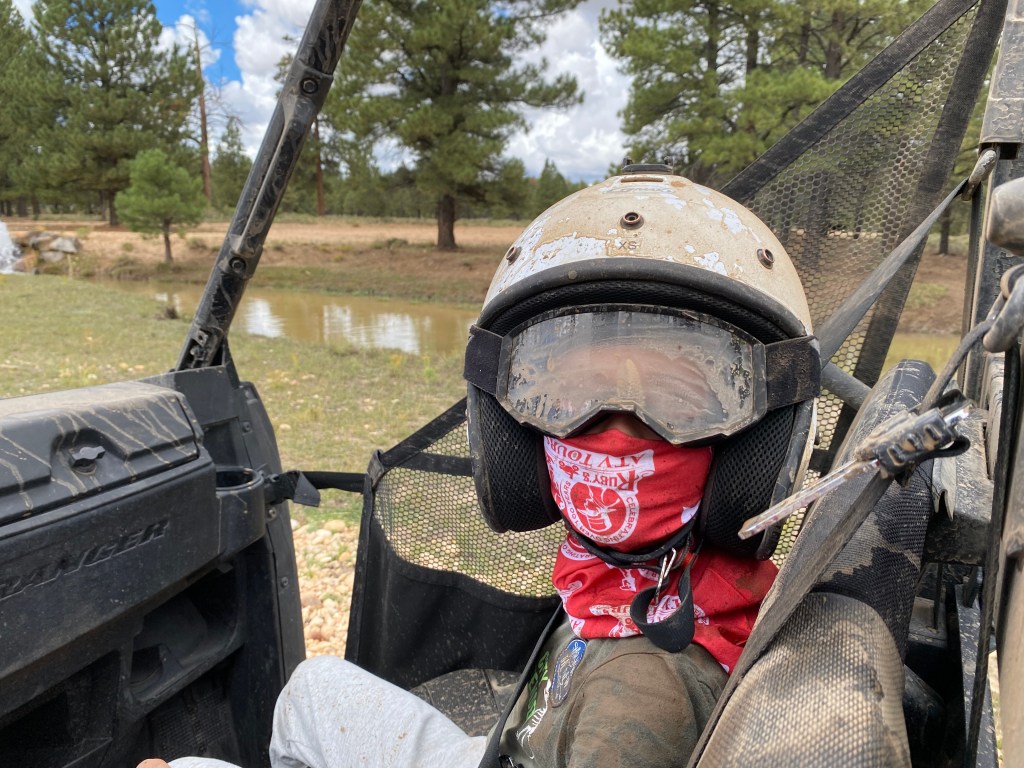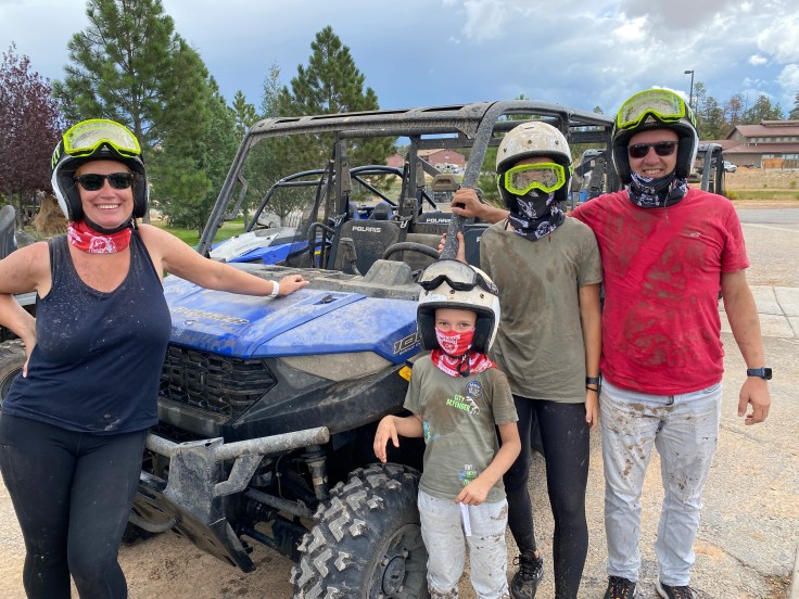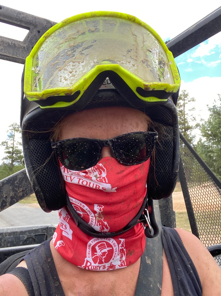 Unser ATV hatte Platz für 6, wobei wir ja nur zu viert waren. Die Männer saßen vorne und die Mädels hinten und ab ging es zum Bryce Canyon. Wir waren eine kleine Gruppe von Fahrzeugen und ganz hinten fuhren wir und noch eine Familie aus Deutschland. Alle Fahrzeuge vor uns hatten offensichtlich eine gemütliche Landschaftstour gebucht, sie fuhren bedächtig, mieden Schlaglöcher und alle Pfützen und kamen wieder sauber am Start- und Zielpunkt an. Wir dagegen hatten die dreckigsten Klamotten aus dem Koffer ausgekramt und hatten Spaß gebucht. An dieser Stelle habe ich festgestellt, dass mein Mann und ich die gleichen Fetische haben, nämlich die Pfützen. Also ich fotografiere gerne in Pfützen das Spiegelbild und mein Mann brettert gerne mit einem Geländefahrzeug hindurch. Gleiche Leidenschaften sind soooo wichtig für eine Beziehung. In diesem Fall würde ich jedoch darauf bestehen, dass wir nicht gleichzeitig unserer Leidenschaft nachgehen, dann hätte ich ein Problem.