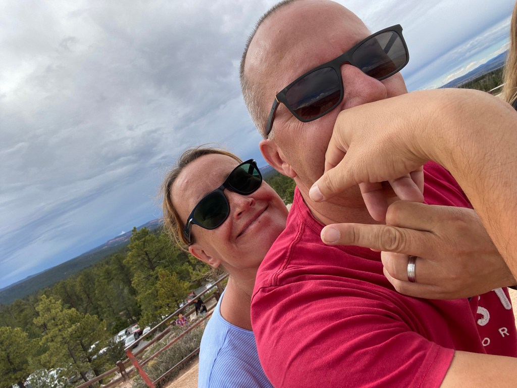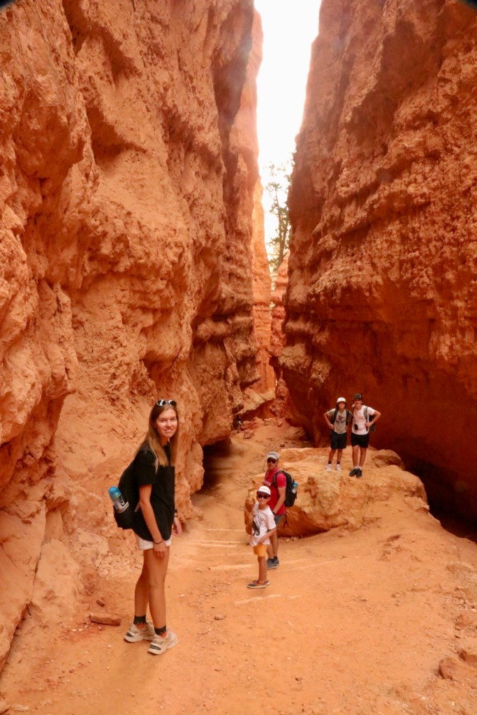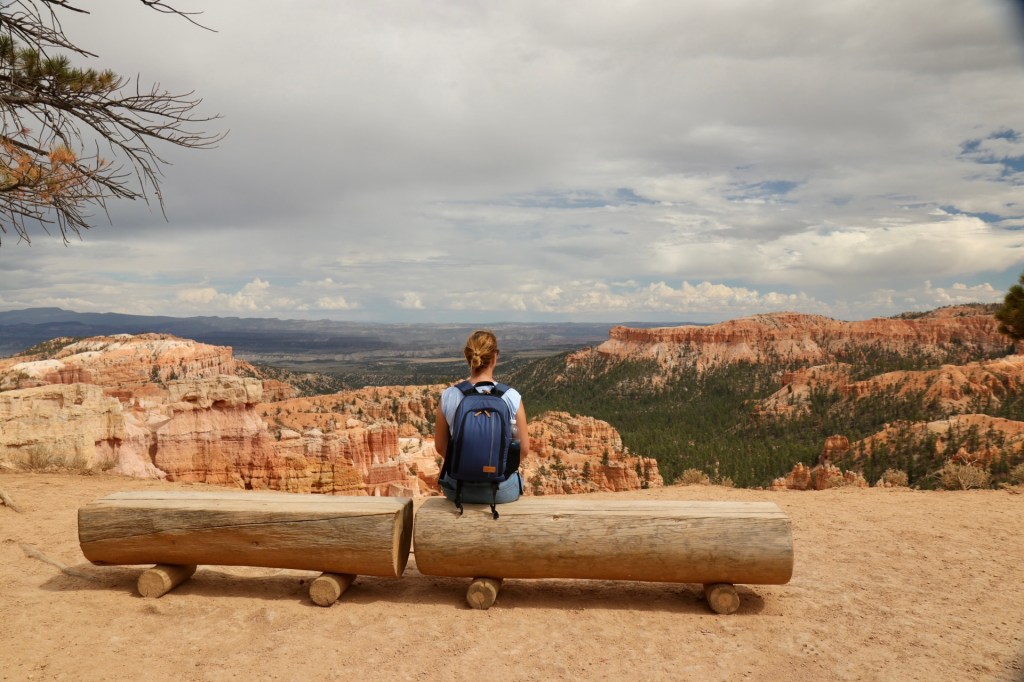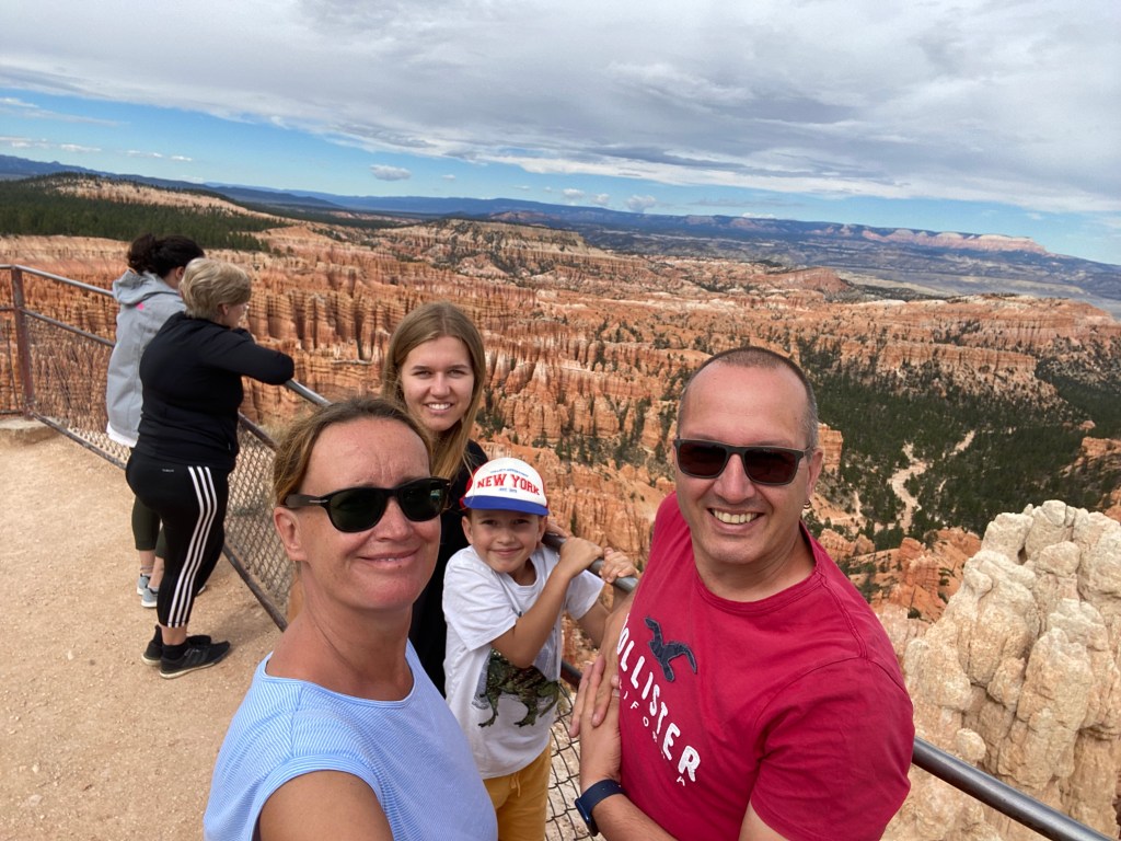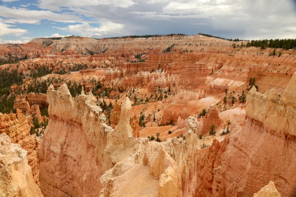 Aber bei allen Rachefantasien blieben wir natürlich brav, duschten und wechselten die Klamotten, um anschließend in den Bryce Canyon zum Wandern zu fahren. Wiedermal waren wir eingekreist von schwarzen Gewitterwolken und die Frage stand, ob Wandern ins Tal jetzt die kluge Wahl ist. Aber mit nun einigen Tagen Wettererfahrung wagten wir den Abstieg mit der Vorgabe, beim ersten Tropfen drehen wir um.