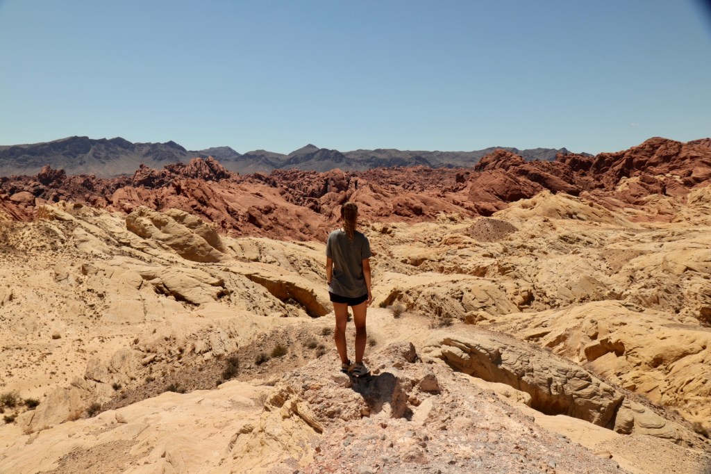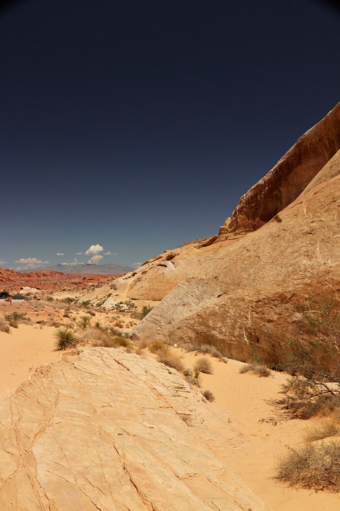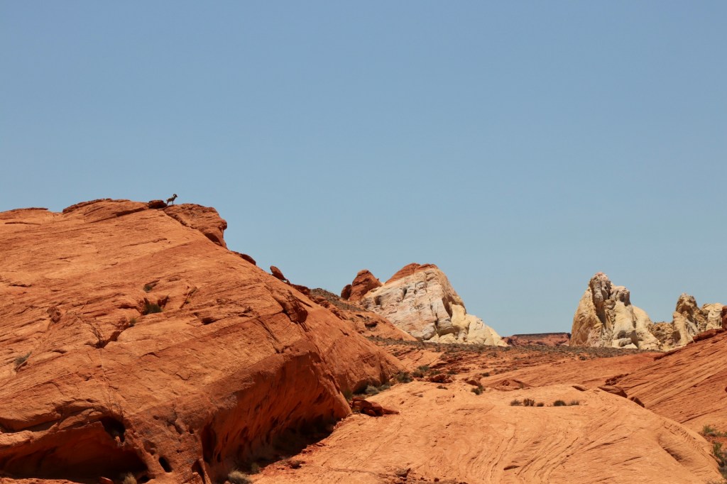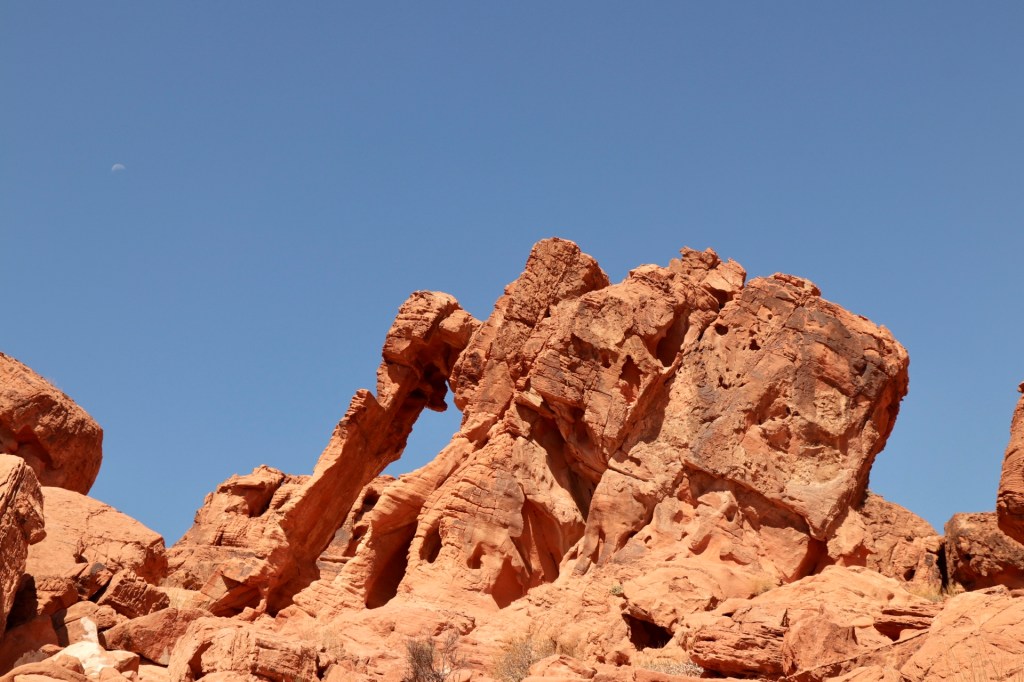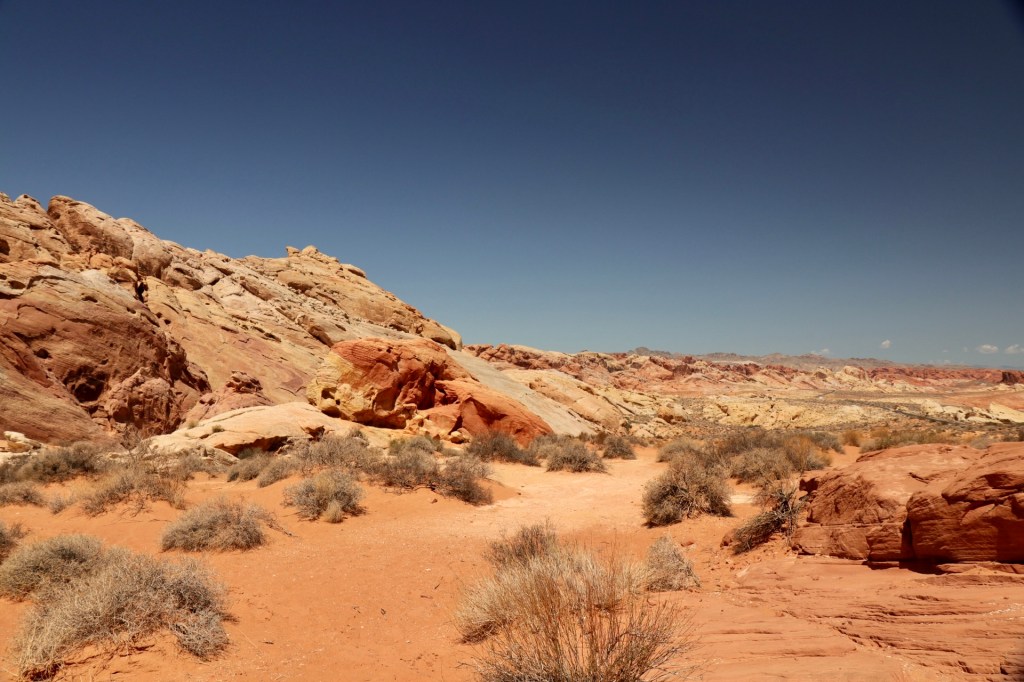 Aber das Valley of Fire hat ja mehr zu bieten, als diesen Elephant Rock. Also ging es weiter zum nächsten Viewpoint bzw. Ausgangspunkt für eine klitzekleine Wanderung von 2 Kilometern. Dieses Mal schafften wir jedoch nur rund dreihundert Meter, dann waren wir so erhitzt, dass wir freiwillig aufgaben. Wenn man Angst haben muss, dass man einfach so verglüht wie eine Sternschnuppe, ist es einfach vernünftiger umzukehren und sich ins fahrende Gefrierfach zu legen. Also genossen wir ab jetzt nur noch die Viewpoints, die direkt am Parkplatz lagen. Alle anderen Wanderwege waren eh gesperrt wegen der Hitze. Was mich aus Fotografensicht zwar ärgerte, aber mich als Mutter eher beruhigte.