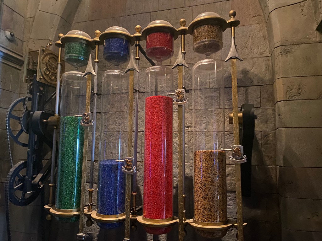 Zuerst mussten wir jedoch den Rucksack wegschließen, damit er uns beim Flug mit dem Besen nicht um den Kopf fliegt. Dafür hatten wir unsere Fingerabdrücke abgegeben. Ja, hier in den Universal Studios muss man am Eingang seinen Fingerabdruck registrieren, auch Georg. Schöne Grüße vom Amerikanischen Datenschutz, falls es ihn gibt. Jedenfalls bekamen wir mit unserem Fingerabdruck einen Schrank für unser Gepäck. Kinder kann man hier übrigens auch parken, falls sie zu klein sind. Sicherlich auch mit Fingerabdruck, aber ob im Schrankfach, weiß ich nicht.