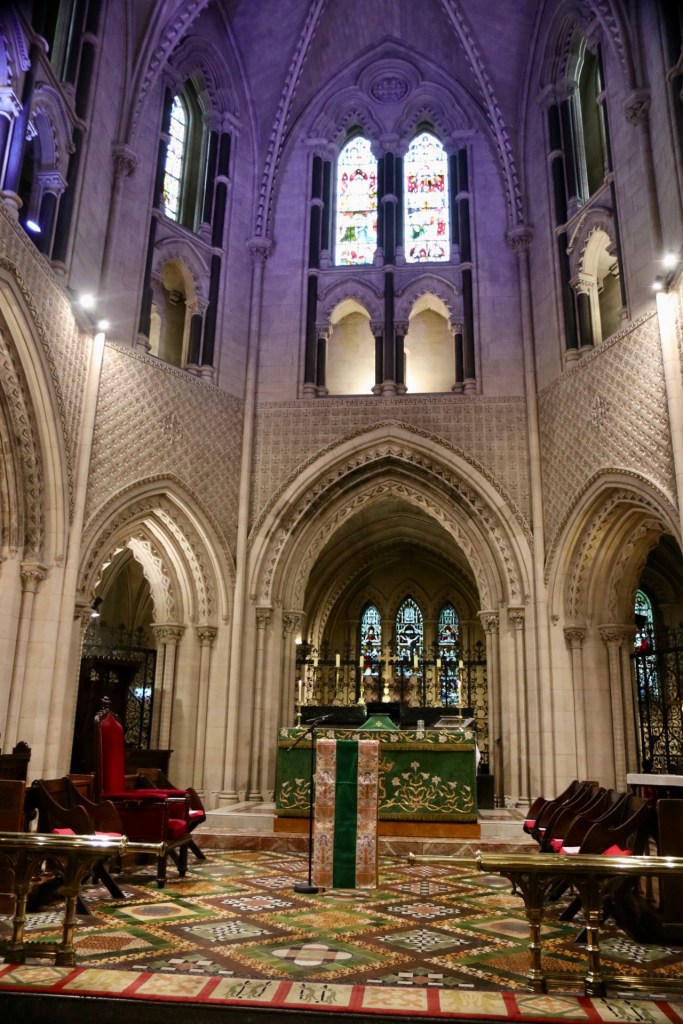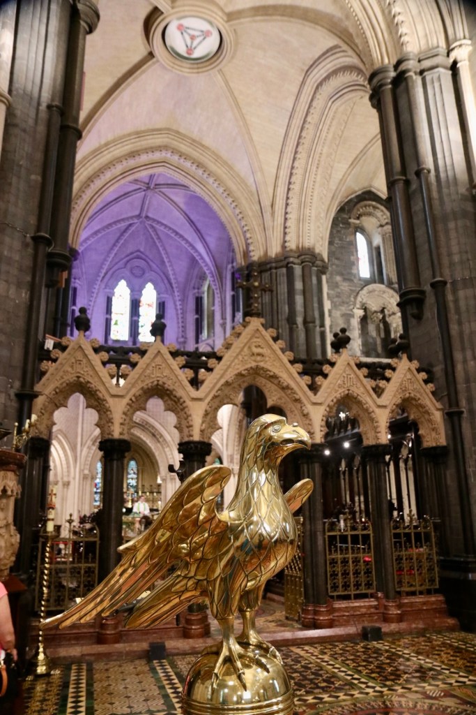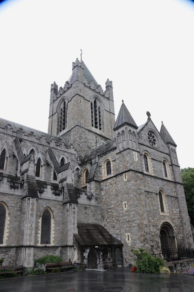 Blöd war nur, dass wir ein Date hatten. Um 13:30 sollten wir am Gefängnis, dem Kilmainham Goal, eintreffen. Für diese Eintrittskarten hatte ich mir so einige Online-Minuten um die Ohren geschlagen, denn diese waren dauernd ausverkauft und ich musste mit jedem Klick auf Rückläufer hoffen. Und nun standen wir an der Endhaltestelle unseres Alleinunterhalters und hatten noch ca. 4 km bis zum eigentlichen Ziel, dem Gefängnis. Auf dem Weg mussten wir auch noch Not-Shopping und Sightseeing einfügen, denn Georg brauchte dringend waterproofed Schuhe, die auch wirklich dem Wasser widerstehen und es lagen ganz furchtbar viele Sehenswürdigkeiten, wie Kirchen, Kathedralen und Pubs auf dem Weg, die von mir fotografiert werden wollten. Fakt war, dass wir somit die letzten beiden Kilometer rennen mussten, damit wir unser Ziel noch schafften.