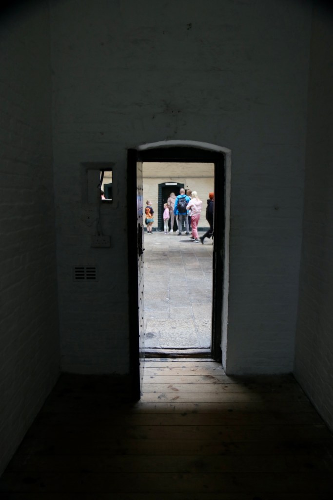 So trudelten wir mit drei Minuten Verspätung, aber viel Schweiß unter den Achseln im Gefängnis ein und wurden dem Tourguide hinterhergesandt. Diese Verspätung hielt mich allerdings nicht davon ab, einen kleinen fototechnischen Abstecher vor dem Tourguide zu unternehmen. Das Gefängnis landete ja hauptsächlich bei mir auf der Things-to-do-Liste, weil es als Kulisse für den Film „Im Namen des Vaters“ und für ein U2-Musikvideo hergehalten hatte und somit als Fotospot schon als durchaus tauglich durchging. Während also die gesamte Reisegruppe im Gefängnis dem „Führer“ folgte, entdeckte ich den eigentlichen Fotospot ganz ohne störende Touristengruppen und konnte der Versuchung nicht widerstehen. Dafür kassierte ich meine erste Verwarnung „Please stay with the group!“. Okay, ich bin fotomotivtechnisch echt nicht lernfähig und so kassierte ich diese Verwarnung gefühlt bei jeder Abzweigung im Gefängnis. Denn wer es noch nicht mitbekommen hat, mit dem teile ich ´meinen ultimativen Gruppenführungstipp. Bitte immer am Ende der Gruppe verweilen, denn während alle dem „Führer“ folgen und interessiert dreinblicken, bleibe ich ganz allein und kann jede Sehenswürdigkeit ganz ohne störende Mittouristen fotografieren. Mit einem charmanten Lächeln gibt der „Führer“ meist nach der dritten Verwarnung auf und akzeptiert, dass ich spät komme, aber immerhin komme.