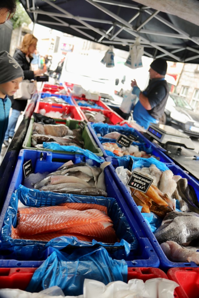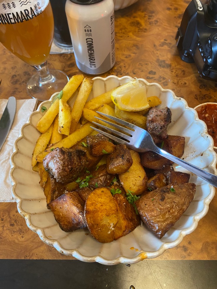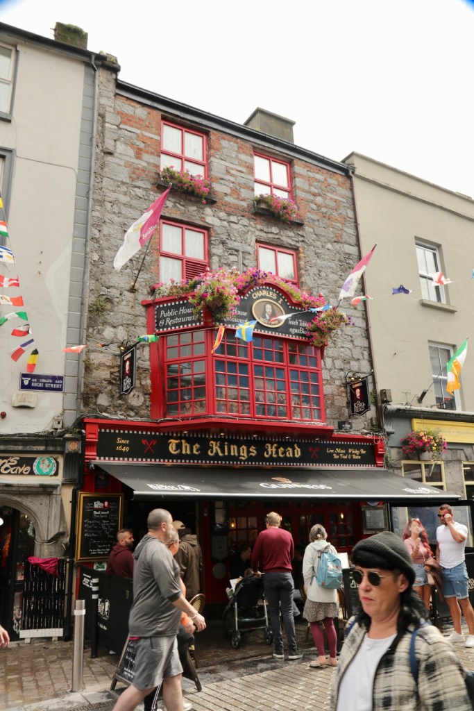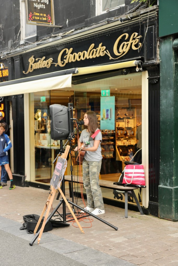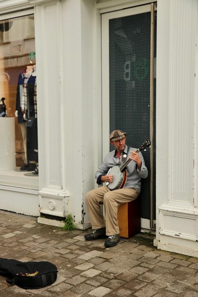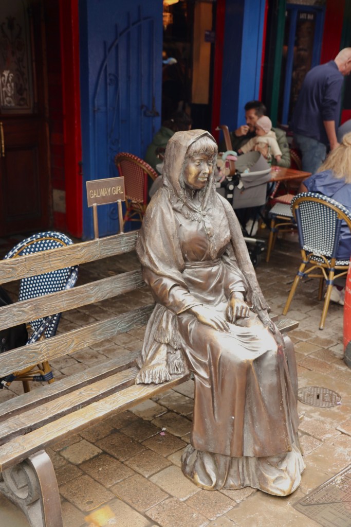Also machten wir uns erst einmal ein gemütliches Frühstück und überlegten: „Was fangen wir an einem verregneten Tag auf dieser wunderschönen Insel an?“. Blöderweise hatten wir gestern schon die Höhlen abgehakt, also blieb uns nur Sightseeing mit diversen Unterstell- und Trocknungsoptionen. Wir fuhren ins die jugendliche Stadt Galway und ließen uns treiben. Hier ist wirklich das studentische Leben an der Macht und dazu gibt es noch eine ausgeprägte Kneipenkultur in der Innenstadt. Also sollte es uns doch gefallen. Die Stadt ist auch bekannt für ihre Straßenmusiker. So steht aller paar Meter ein neuer Musiker und gibt in der Regel eine Variante von Ed Sheerans Song „Galway Girl“ zum Besten, welches auch in Bronze gegossen vor einem der Pubs steht. Nach zehn Straßenkünstlern haben wir dann aufgehört zu zählen und erst recht zu zahlen. Aber offensichtlich reichen die Einnahmen hier in der Stadt für viel, viel mehr Künstler.