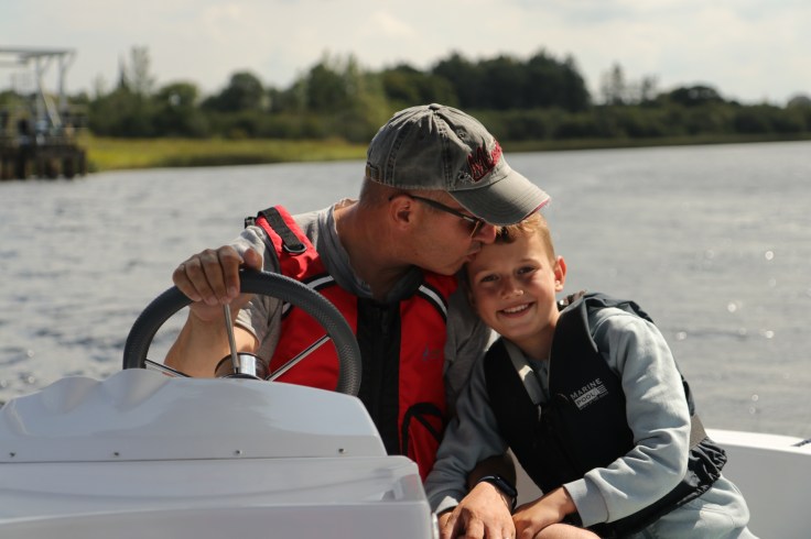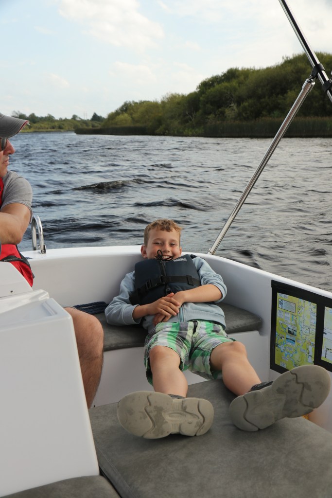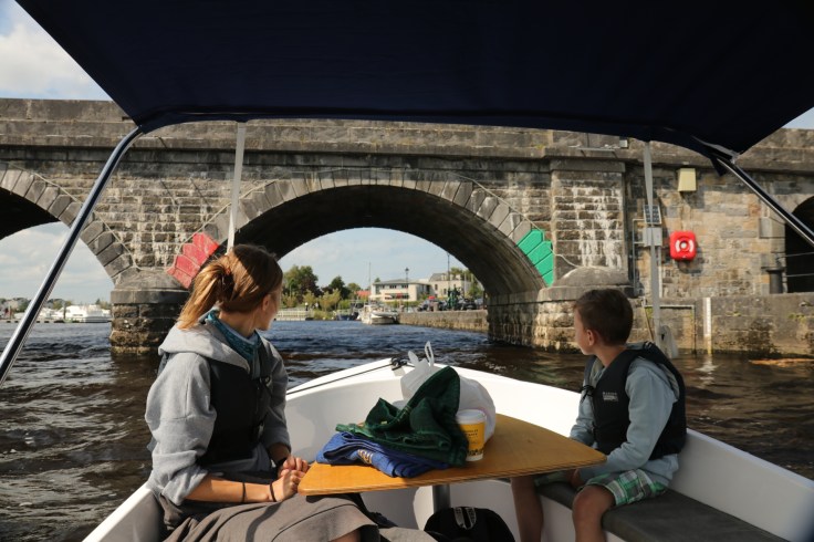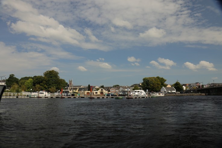 Der vorletzte Unterkunftswechsel stand heute an und fühlt sich schon an wie der letzte. Ich hasse diese Phase des Urlaubs, wenn der Alltag wieder vor der Türe steht und bedrohlich wirkt mit all seinen Pflichten, Regeln und Terminen. Aber noch sind wir hier und so hieß es Richtung Landesinneres fahren. Genauer gesagt, haben wir uns den längsten Fluss von Irland, den Shannon vorgenommen, inklusive der vielen Seen, die seinen Weg bereichern. Und wenn wir Wasser hören und gleichzeitig gutes Wetter angesagt ist, verbinden das unsere Gehirne zu einem Tag auf dem Wasser. Also schnell ein kleines elektrisches Motorboot für den Nachmittag ausgeliehen. Und ab ging es nach Garrick on Shannon einer Stadt am Fluss, wie der Name unschwer vermuten lässt.