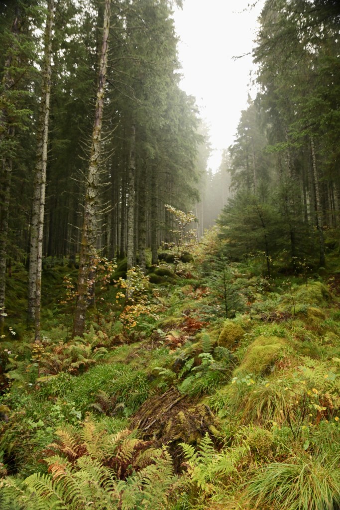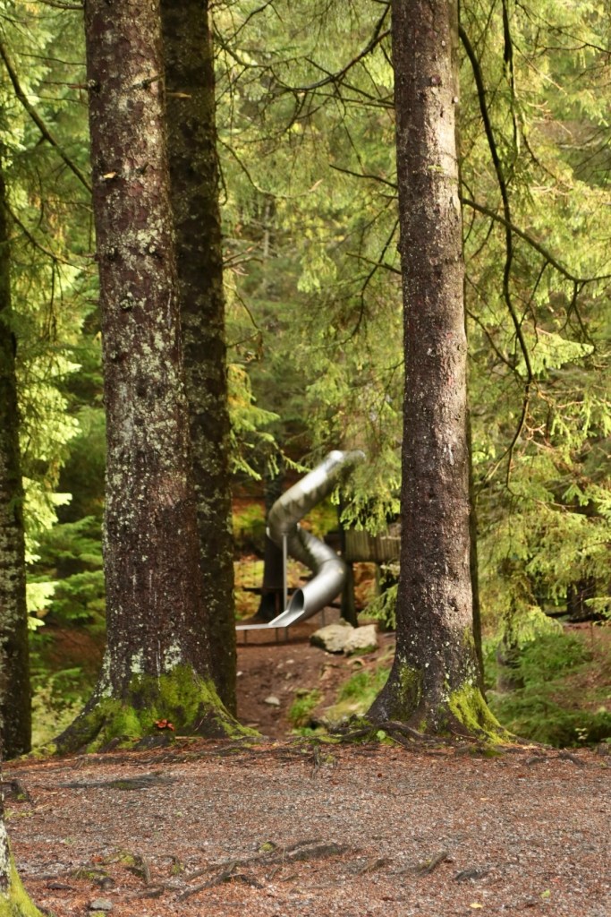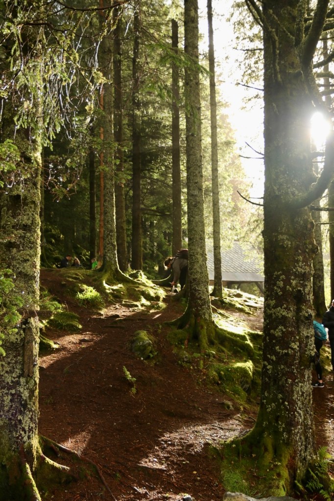 Nach diesen ersten Bergbesteigungen und dem Gefühl einer Erstbesteigung nach Wochen im Tale und noch so vielen Bergen in Bergen um uns herum (hach machen diese Wortspiele Spaß), beschloss ich dass wir diesen Floyen gefälligst mit der Bahn erklimmen. Also ab und durch, durch diese wunderschönen Gassen mit den wirklich wunderschönen Häusern. Die Stadt hatte mich sofort und so wollten wir sie uns auch endlich von oben anschauen. Als wir an der Floyen-Bahn ankamen erstreckte sich wieder diese Ameisenstraße, die sich offensichtlich durch die ganze Stadt zog bis hin zu diesem Tickethäuschen. Eine riesige Schlange und alle wollten mit. Doch für’s Schlange stehen sind wir nicht gemacht, also schnell online ein paar Tickets gebucht und rechts an der Schlange vorbei, ohne jegliche Wartezeit ab in die Bahn. Ich schätze, jetzt wo ich diesen ultimativen Tipp geteilt habe, sind die Zeiten der nicht vorhandenen rechten Schlange Geschichte. Aber was soll’s, wir fuhren jedenfalls direkt hoch und genossen augenblicklich Natur, Ausblick und einen verwunschenen Wald. So schnell fühlt man sich wieder in der Natur, auch wenn man eine Stunde vorher noch am Fahrstuhl einer Stadt angestanden hat.