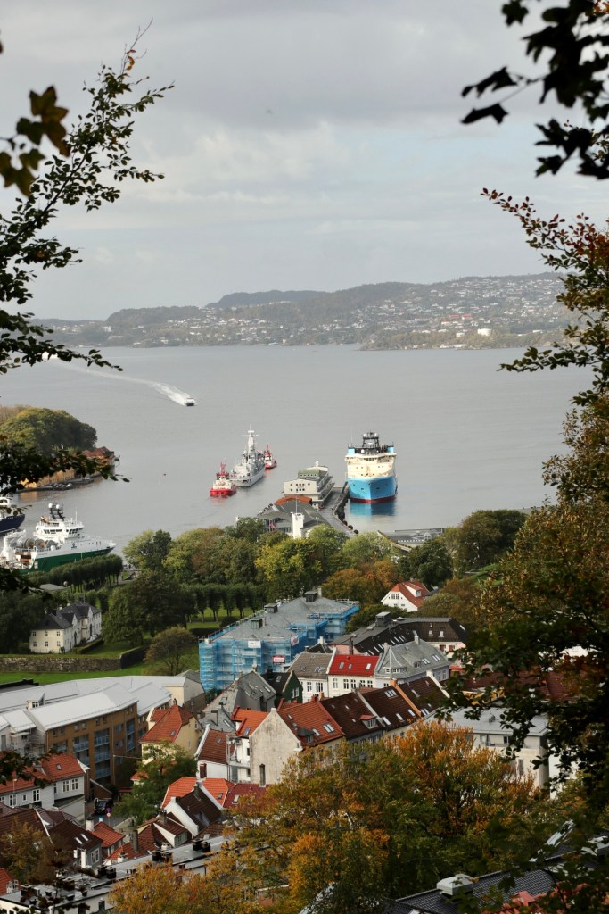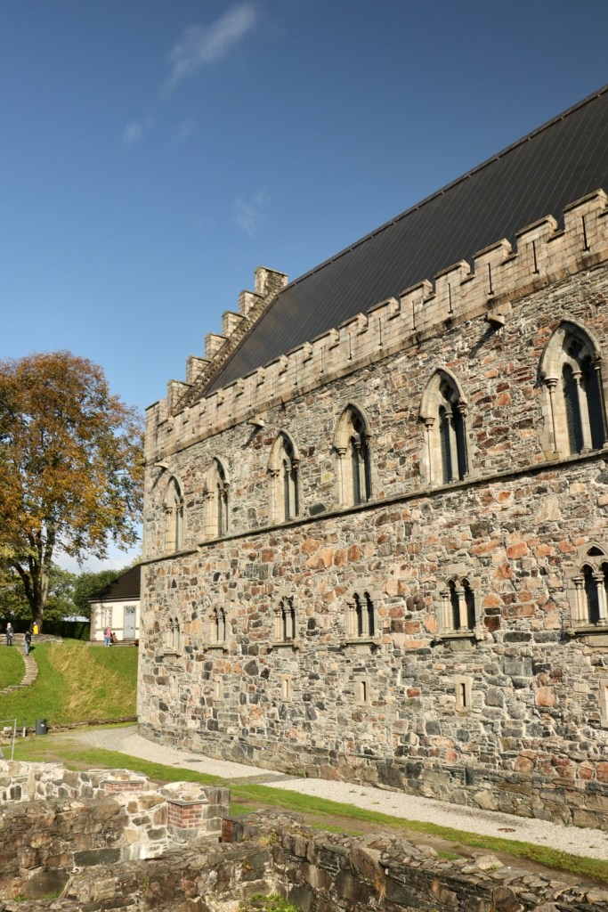 Den Weg hinunter genossen wir zu Fuß und jedes Stückchen Moos und Farn fühlte sich wunderschön an. Da störte es auch nicht, dass hi und da ein paar Tropfen Regen runter kamen. Für Bergener Verhältnisse hatten wir nämlich eher Glück. Als wir wieder in der Stadt ankamen und die Festung ansteuerten gab es sogar blauen Himmel und Sonnenschein. So lieben wir das natürlich noch etwas mehr.