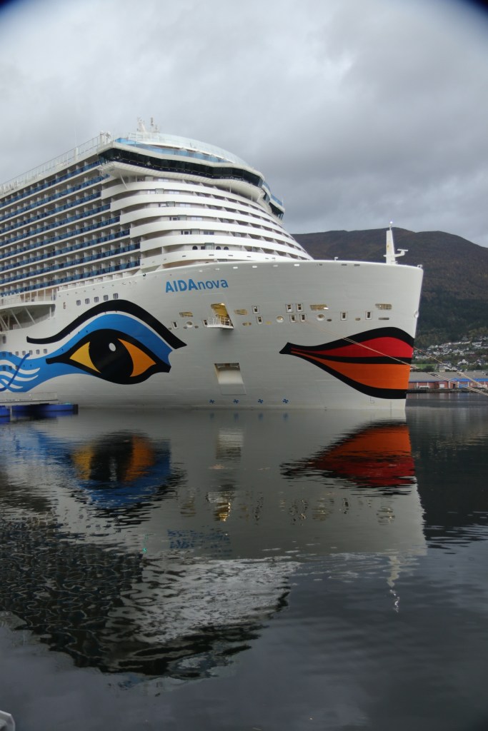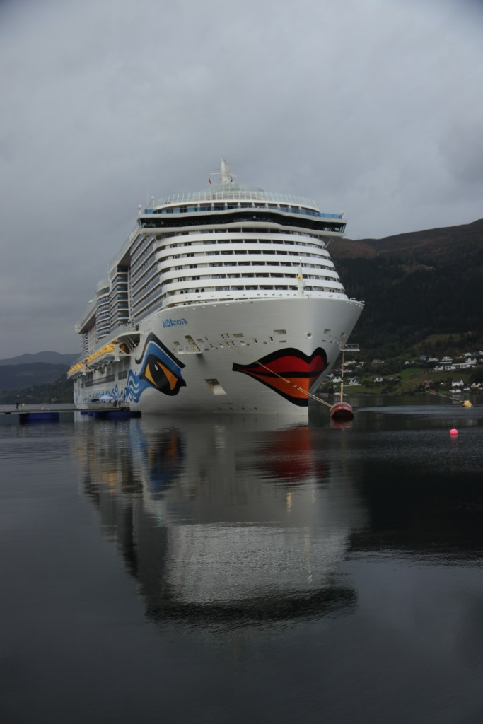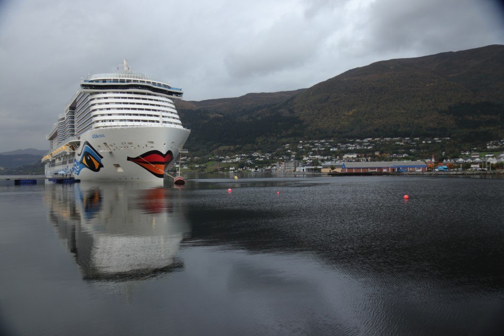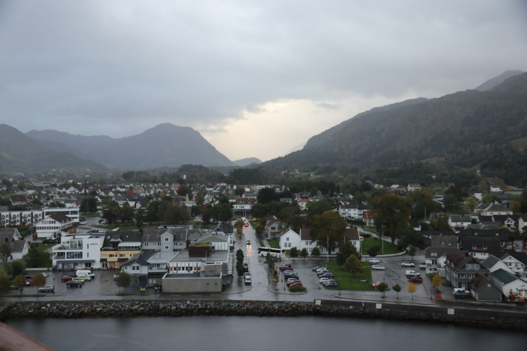 Heute stand nun unser zweiter Landgang an, Nordfjordeid war unser Ziel für den heutigen Morgen. Also wieder den Wecker gestellt und zu einer unchristlichen Zeit festgestellt, dass wir irgendwie die Einfahrt nach Nordfjordeid verpasst hatten. Irgendwie standen wir schon im Hafen. Und in diesem Fall ist Hafen definitiv überproportional ausgeschmückt. Denn es war ein Häfchen mitten im Fjord an einer 3.000 Seelen-Gemeinde. Nun kann sich jeder, der die Grundschule erfolgreich absolviert hat, vorstellen, was es bedeutet, wenn ein Schiff mit uns und 6.697 Anderen in ein Dorf einfällt mit 3.000 Einwohnern. Das passt nicht zusammen. Wo sollen wir nur alle hin.