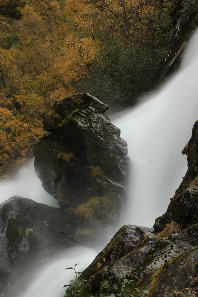 Wir aber konnten. Genauso wie wir die vielen Wasserfälle und den ersten Herbstwald bewundern konnten. Da mussten natürlich auch ein paar Langzeitbelichtungen sein und das, obwohl das Stativ noch schön auf dem Schiff verweilte. Aber was das angeht, bin ich ja Profi und nutze einfach den erstbesten Stein.