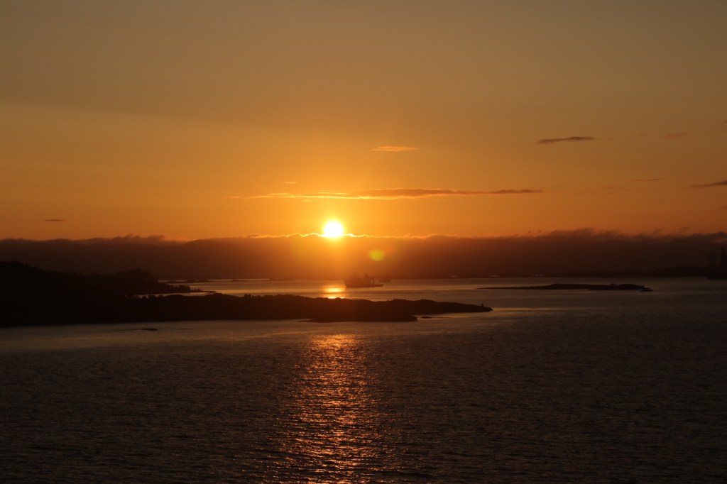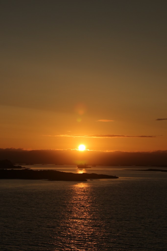 Für heute hatten wir uns einiges vorgenommen und so klingelte der Wecker recht früh. Hätte er aber gar nicht müssen, denn vor uns eröffnete sich das Fjord von Stavanger und ein traumhafter Sonnenaufgang, bei herrlichsten Wetter, küsste uns wach. Der Kapitän begrüßte uns nahezu persönlich über die Lautsprecher und unterstrich nochmal, dass blauer Himmel, Sonnenschein wie heute nicht ganz das typisch zu erwartende Wetter in Stavanger ist. Tja, wir hatten schönes Wetter gebucht und unsere Mission „Abenteuer“ schien auch vom Wettergott abgesegnet zu sein.