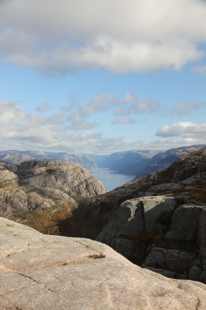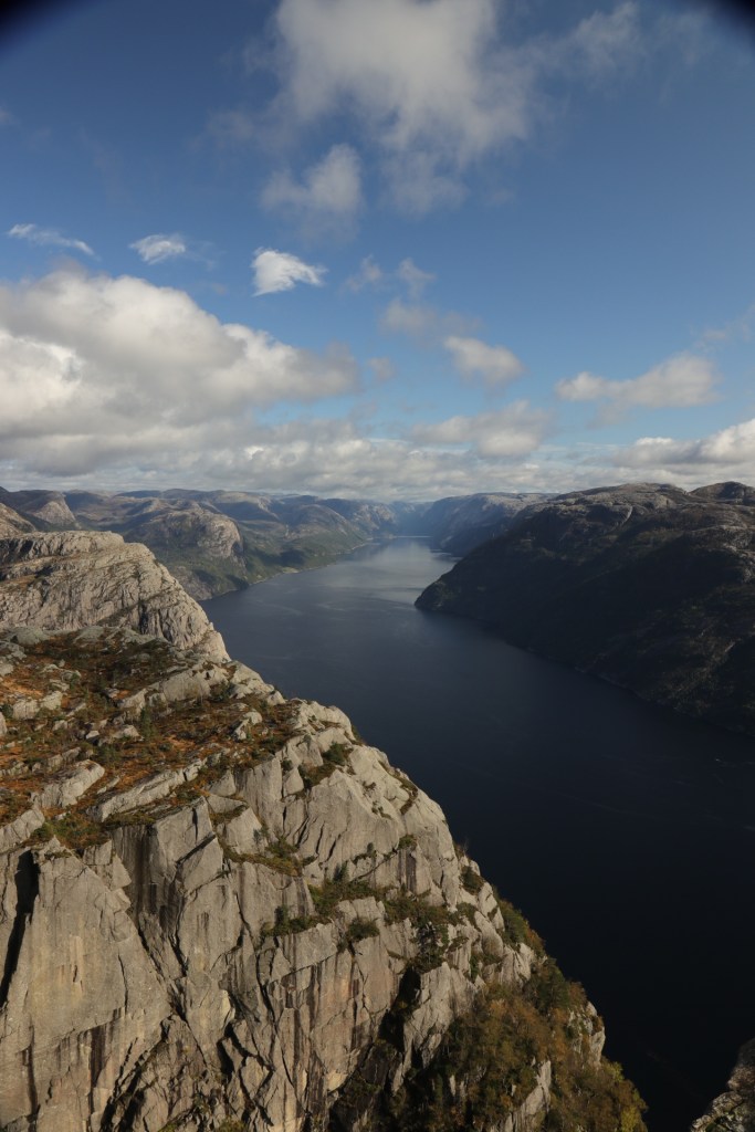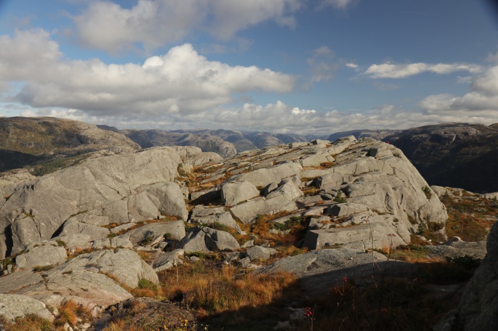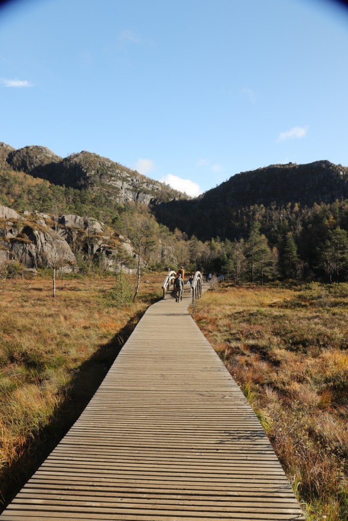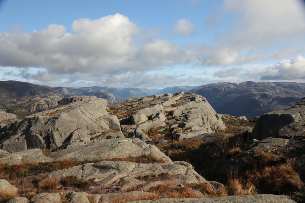 Wir jedenfalls kämpften, schnauften und jammerten, während wir gleichzeitig diesen wunderschönen Tag und das traumhafte Wetter genossen. Ich hatte immer den Fotoapparat im Anschlag, denn dank Wetter sah jede auch noch so kleine Pfütze, wie ein traumhaftes Spiegelbild der Landschaft aus. Auf dem Hinweg bekam ich allerdings nach Hundert Auslösungen das Fotoverbot verhängt, da mein Mann noch Illusionen hatte, das wir dann allein auf der Kanzel des Preikestolen stehen und es sich lohnen würde. Er sah sich schon wie Tom Cruise einen Stunt machen, während ich das Ganze filme, oder anders herum.