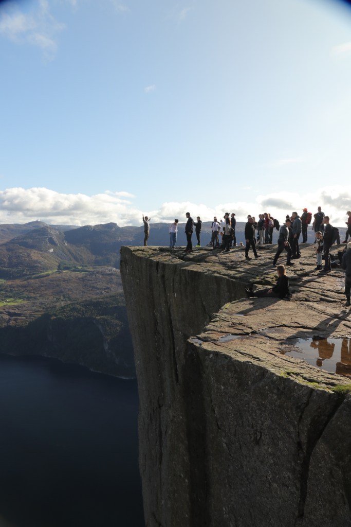 Naja, alleine waren wir jedoch bei Weitem nicht. Es war eher so, dass es hi und da noch so ca. 1-2 Quadratmeter Platz gab, um sich hinzusetzen. Wahnsinn was da oben los ist. Zur Ecke hin stand dann echt sogar noch eine Schlange, um sich vor dem Abgrund fotografieren zu können.