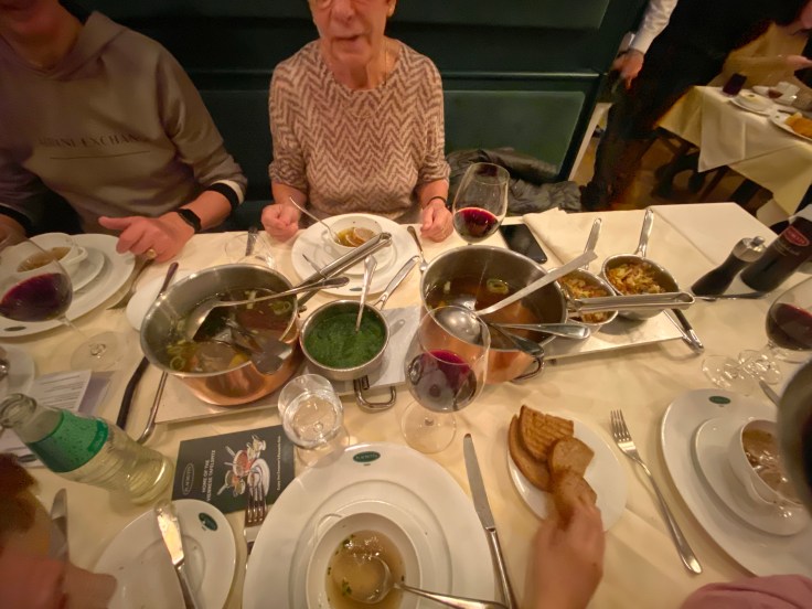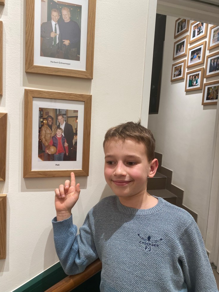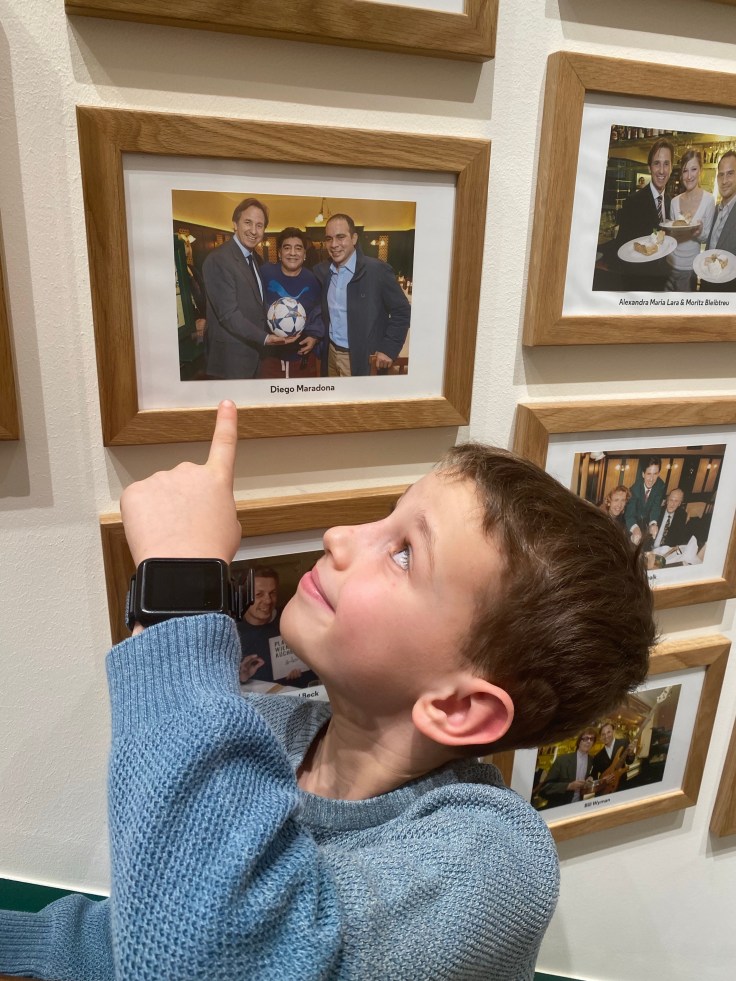 Auf dem Gang zum WC kann man übrigens bildlich bewundern, wer noch alles seinen Magen mit Tafelspitz überfüllt hat und während ich auf so Größen wie John Malkovich oder Bette Midler achte, entdeckt unser Fussballverrückter Sohn natürlich Maradona und Pelé. Also für jeden etwas dabei.