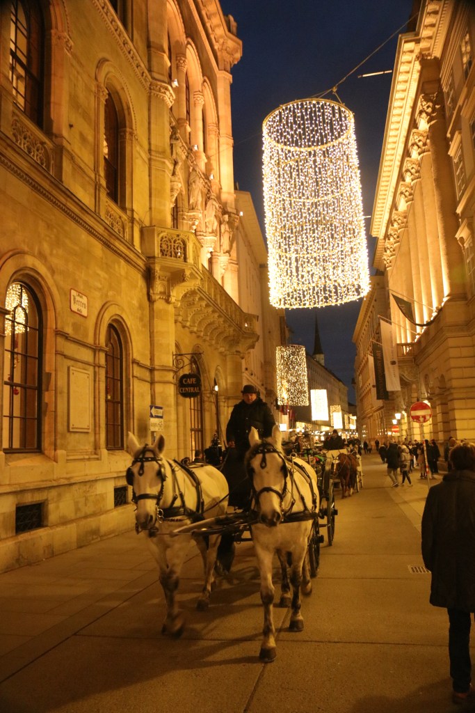 Aber dieses „ich will auch“-Gefühl wurde schnell verdrängt von dem „ich muss mich bewegen“-Gefühl. Und so spazierten wir noch durch das nächtliche Wien und begutachteten die langen Schlangen vor den Restaurants, die wunderbaren Lichter der Stadt und die vielen, vielen promenierenden Touristen. Doch hatte uns der erste halbe Tag Wien schon so einiges abverlangt und so zogen wir gen U-Bahn und anschließend in unser Bettchen. Was wird uns morgen hier erwarten?