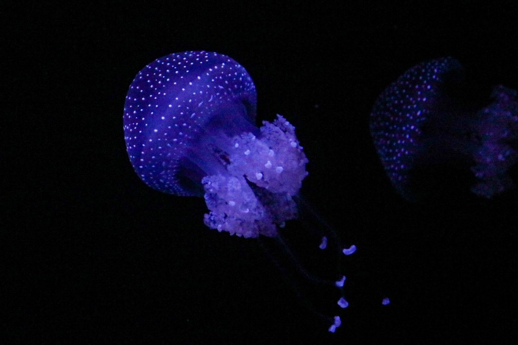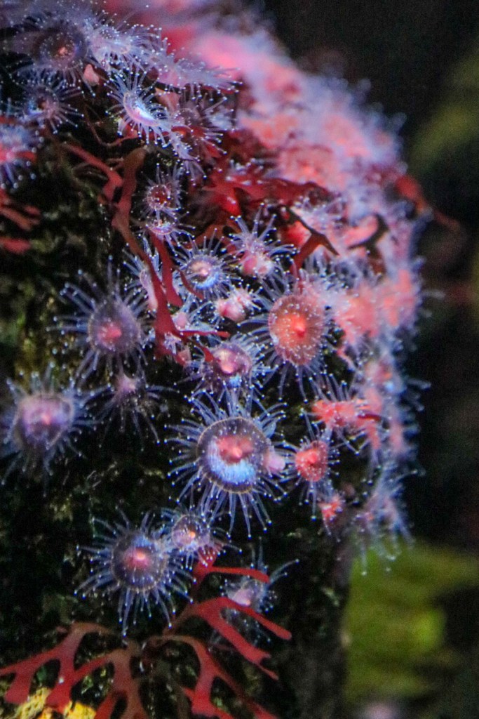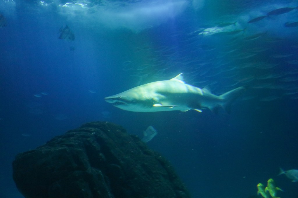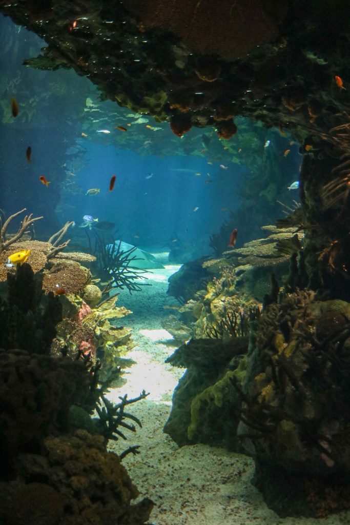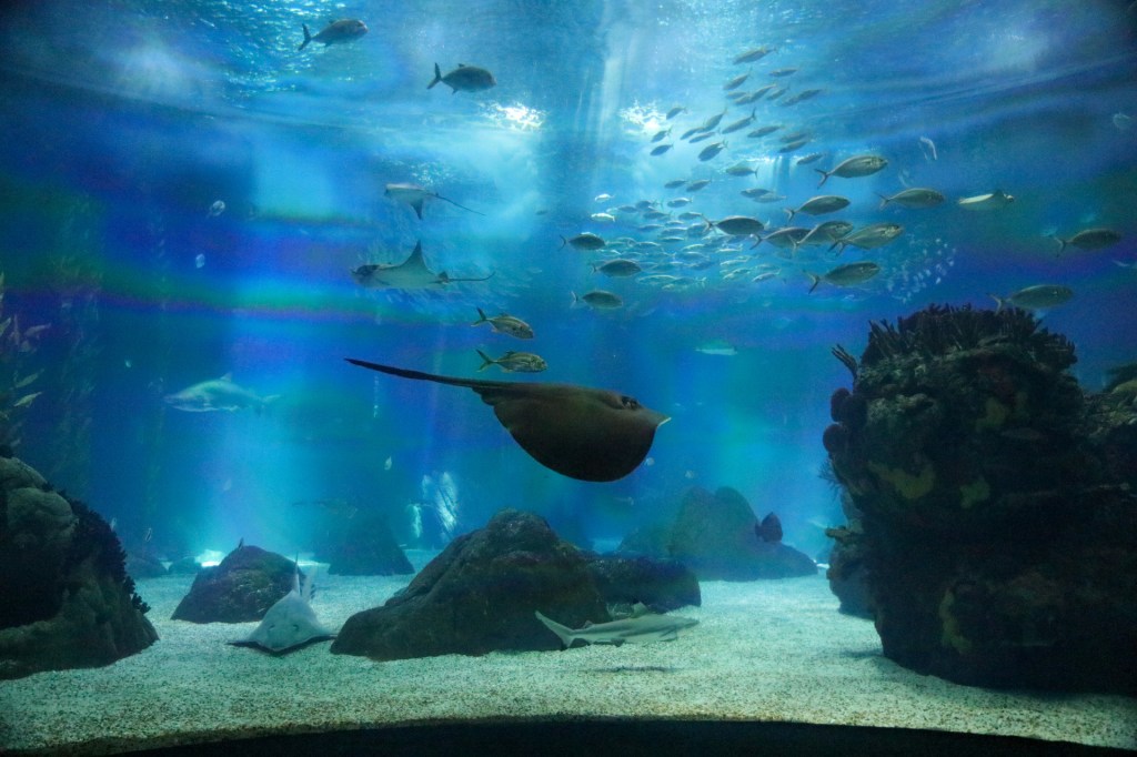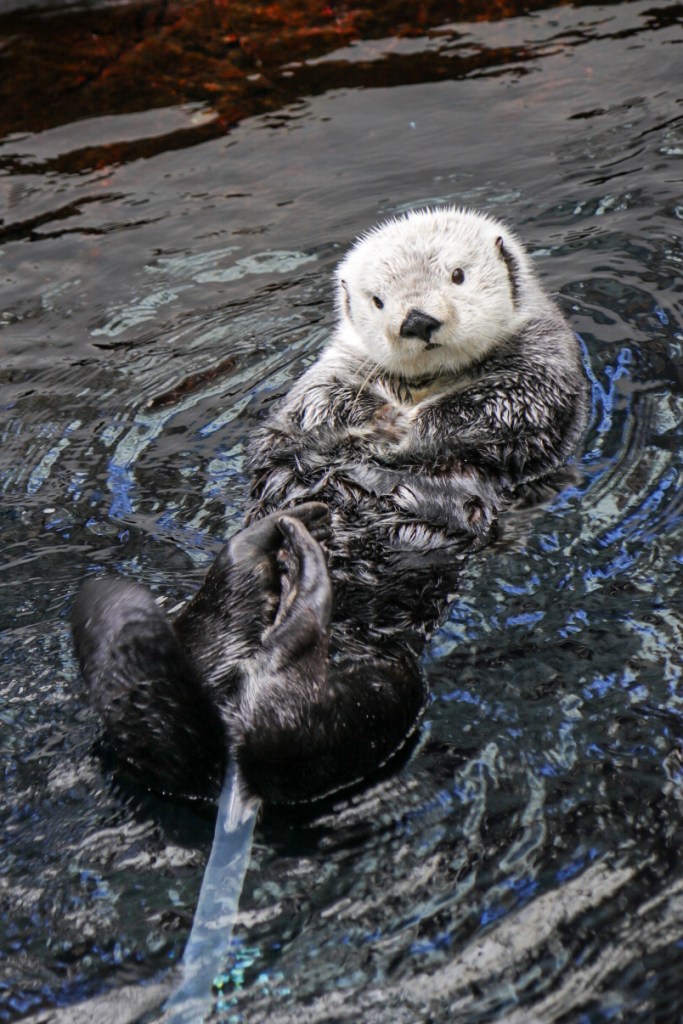 Uns störte das wenig, den wir verlieren uns nicht so leicht. Stattdessen genossen wir das riesige Aquarium in vollen Zügen. Neben dem wirklich großen Mittelbecken, voller Haie, Rochen und einem Mondfisch und neben den vielen anderen Fischen, gab es für die verschiedenen Ozeane noch je einen Außenbereich mit Pinguinen, Mangroven und Puffins und unserem absoluten Highlight auf dieser Tour: Einem völlig gechillten Otter, der rücklings auf dem Wasser trieb und sich dabei auf die zuckersüßeste Art putzte und graulte. Wir waren nicht die Einzigen, die hier ihr Herz verloren. Nein, alle Zuschauer stöhnten: „Oh wie süß!“. Was auch der Souvenirshop am Ende unterstrich, wo es alle Varianten dieses Otters gab. Aber Plüschtiere haben wir schon genug. Deshalb überlegen wir nun, wir wir eine naturgetreue Umgebung für Otterli zu Hause herrichten können. Mal sehen, was aus dem Plan „besonderes Haustier“ wird. Ich persönlich würde mich ja dann genau neben ihm treiben lassen und meinen Bauch graulen, auch wenn das deutlich weniger „süß“ wäre.