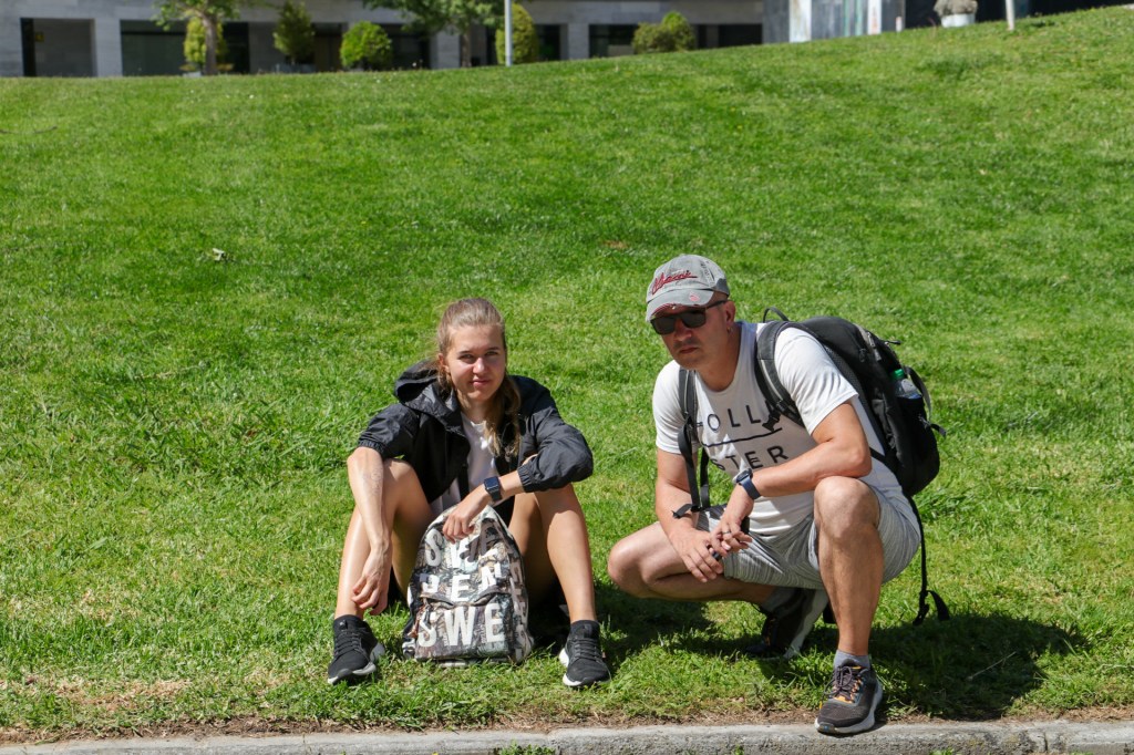Nach dem Aquarium fühlten wir uns spontan an unsere Ski-Urlaube erinnert. Denn hinter dem Gebäude, direkt am Fluss, steht eine Seilbahn. Hier ist nun ausnahmsweise mal kein Berg in der Nähe, dafür aber eine Seilbahn. Verstehe das wer will, ich nicht. Aber dieses Unverständnis hält uns noch lange nicht davon ab, in der Gondel herauszufinden, warum es hier diese Seilbahn gibt. Also eingestiegen, die nicht vorhandenen Skier mal symbolisch eingehangen und ab in luftige Höhen. Okay, man hat für die ca. 10 minütige Fahrt eine nette Aussicht so 50 meter über dem Boden. Man sieht den breiten Fluss und kann über das Expogelände stieren. Aber damit hat sich auch das Erlebnislevel dieser Aktivität erschöpft. Und ganz nebenbei: nicht ein Fitzelchen Schnee haben wir entdeckt. Also stiegen wir am anderen Ende wieder aus, übrigens auf gleicher Höhe wie der Einstieg, was eine Bergbahn echt zur Absurdität macht, und liefen weiter zur Bushaltestelle. Dort mussten wir leider etwas warten, was in mir den Wunsch nach einer Bergbahn zurück in die Stadt wachsen ließ. Aber vom Wünschen allein kommt man halt nicht weiter und so warteten wir geduldig weiter.
