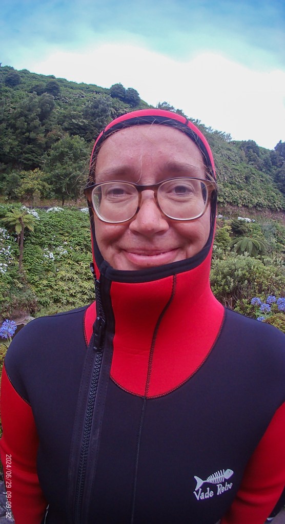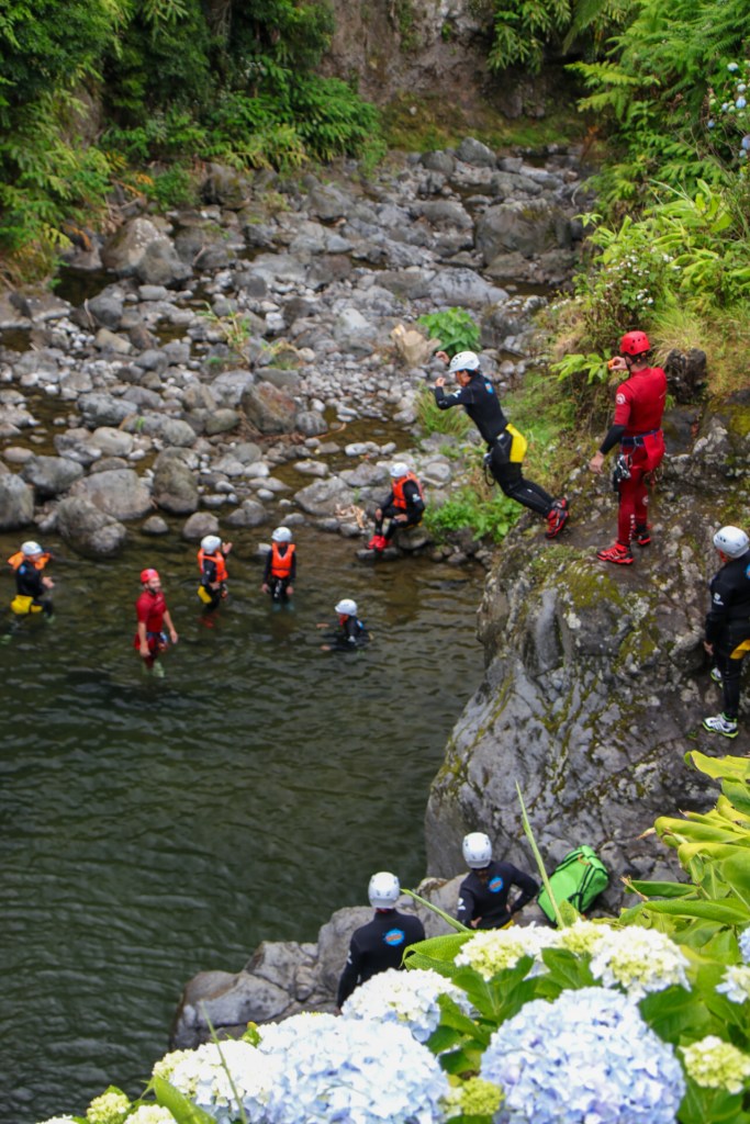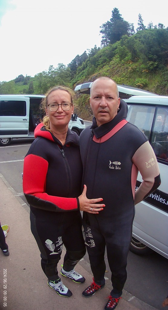 Wir hatten für heute ein Canyoning im Parque Natural da Ribeira dos Caldeirões gebucht und durften daher früh aufstehen. Inzwischen haben meine Blutergüsse die Größe von Melonen und die Farbe von Auberginen bzw. einer schönen farblichen Zusammenstellung eines Hortensienstrauches hier am Wegesrand.