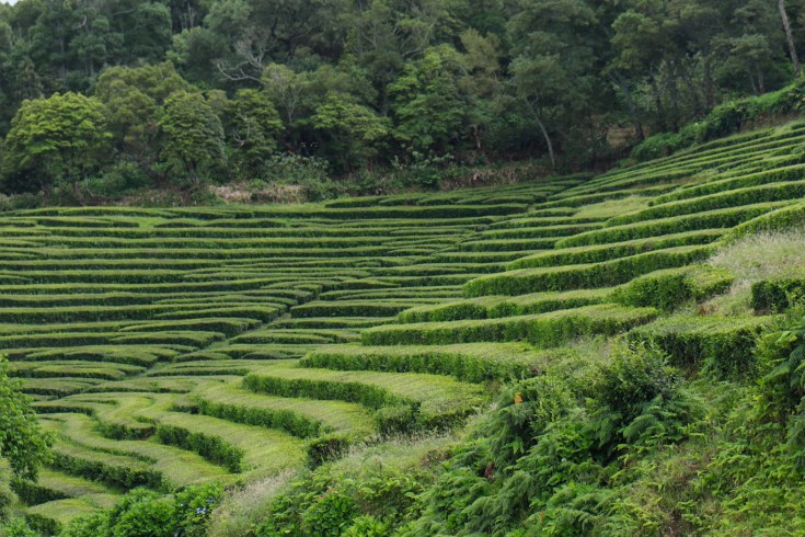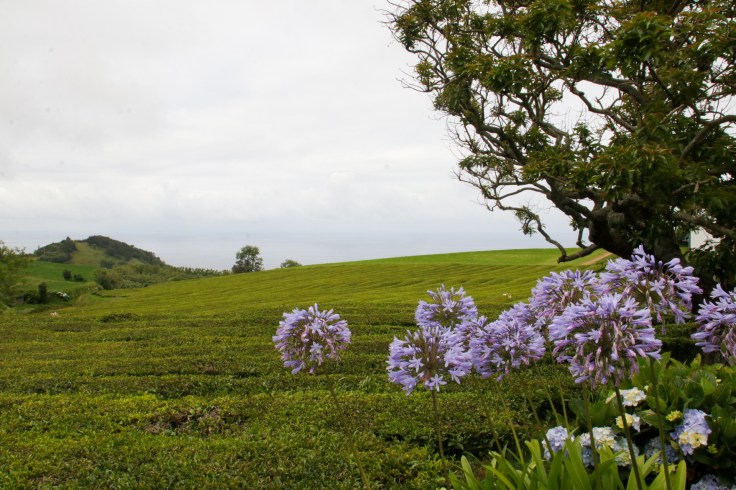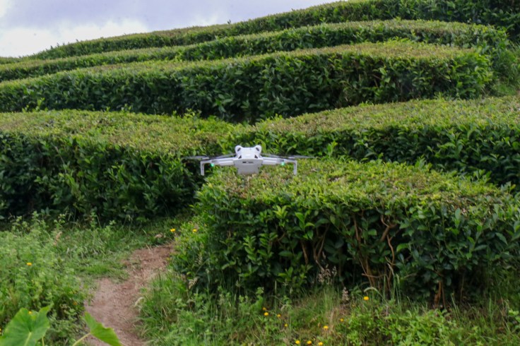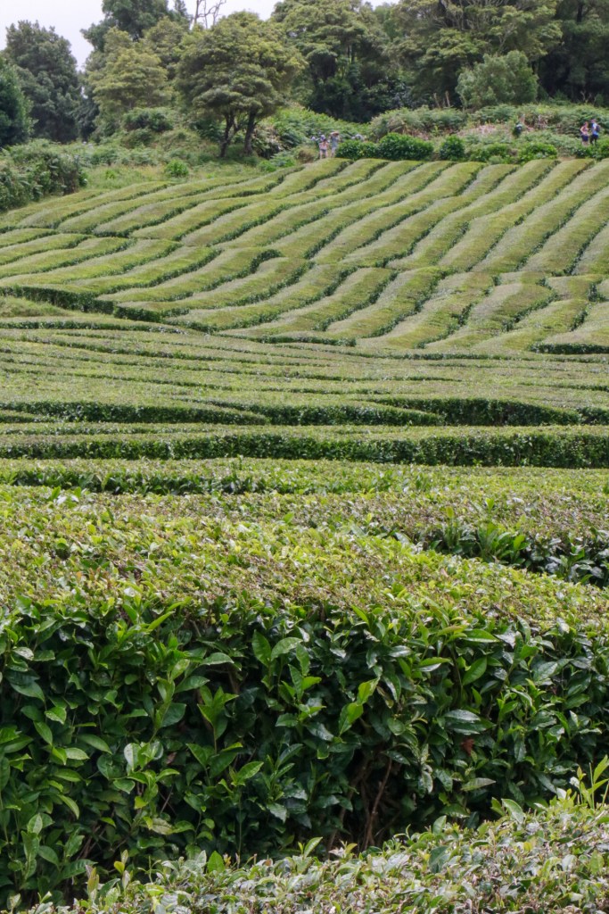 Weiter ging es an der Küste entlang und einige Fotostops wurden mitgenommen. Und davon gibt es hier wirklich reichlich. Ich kann gar nicht all das Wunderschöne hier aufzählen. Aber wir hatten noch ein kleines und ein großes Ziel geplant und so hielten wir bei Cha Gorreana, einer Teeplantage im Norden der Insel. Nicht dass wir bekennende Tee-Gourmets sind, aber die Mehrheit von uns hatte Tee bisher nur im Beutel gesehen und noch nie auf einer Plantage. Außerdem mussten wir doch endlich mal unsere Drohne ausfliegen lassen und so eine Teeplantage bietet dafür die ideale Grundlage. Bisher hatte unser Dröhnchen nämlich Flugangst. Entweder durften wir nicht, oder es windete zu stark oder der Akku war alle, oder, oder, oder. Aber nun, auf der Teeplantage durfte sich unsere Drohne ganze fünf Minuten austoben. Dann war schon wieder der Moment des Glanzes vorbei. Aber wir haben erste Videos und Fotos. Also bin ich optimistisch, dass es der perfekte Start für eine tolle Karriere unseres Dröhnchens war.