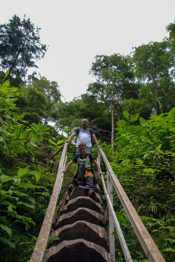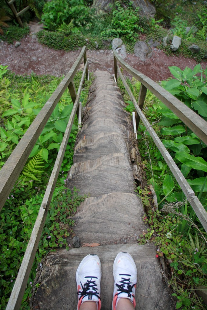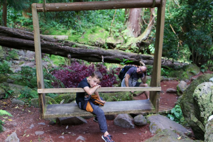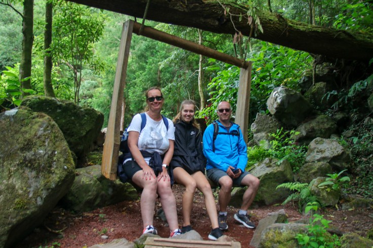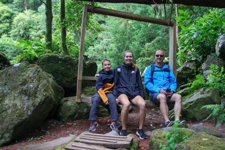 Die Natur hier ist absolut beeindruckend. Schaut man Richtung See, sieht man bemooste Bäume und eine Atmosphäre, wie auf 2000 Meter Höhe im Gebirge. Dreht man sich um, steht man vor einer Wand aus 8 Meter hohem Bambus und vor lauter blühenden Hortensien, was sonst. Bei der Wanderung um den See lernten wir mal wieder die freundlichen Insulaner kennen. Auf viertelster Strecke der Umrundung befand sich in der Mitte vom Nirgendwo ein Kletterwald, zwischen den ewig hohen Bäumen. Ich wollte zwar nicht klettern, aber ich brauchte dringend eine Pause und einen Kaffee. Also angehalten und gefragt. Für 1€ bekommen wir natürlich einen Kaffee von der guten Frau. Und da wir etwas Trinkgeld gaben, wurde aus dem einfachen Kaffee gleich ein doppelter, inklusive einer Schale Kekse für die Kids. Und das, obwohl wir nicht mal das Klettern gebucht haben. Das nenne ich Gastfreundschaft.