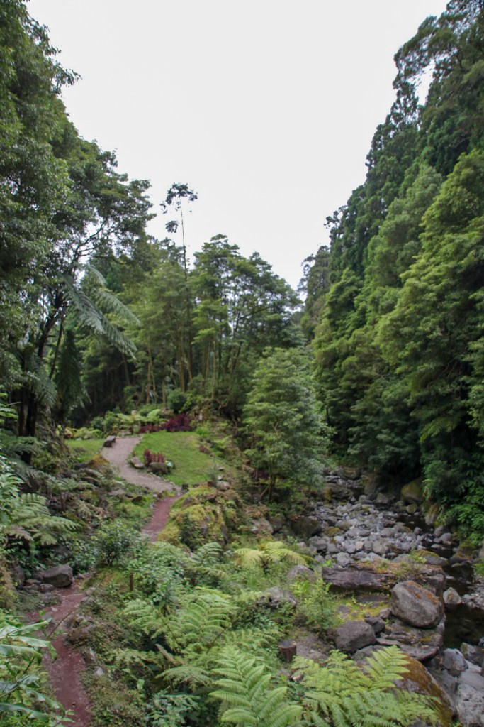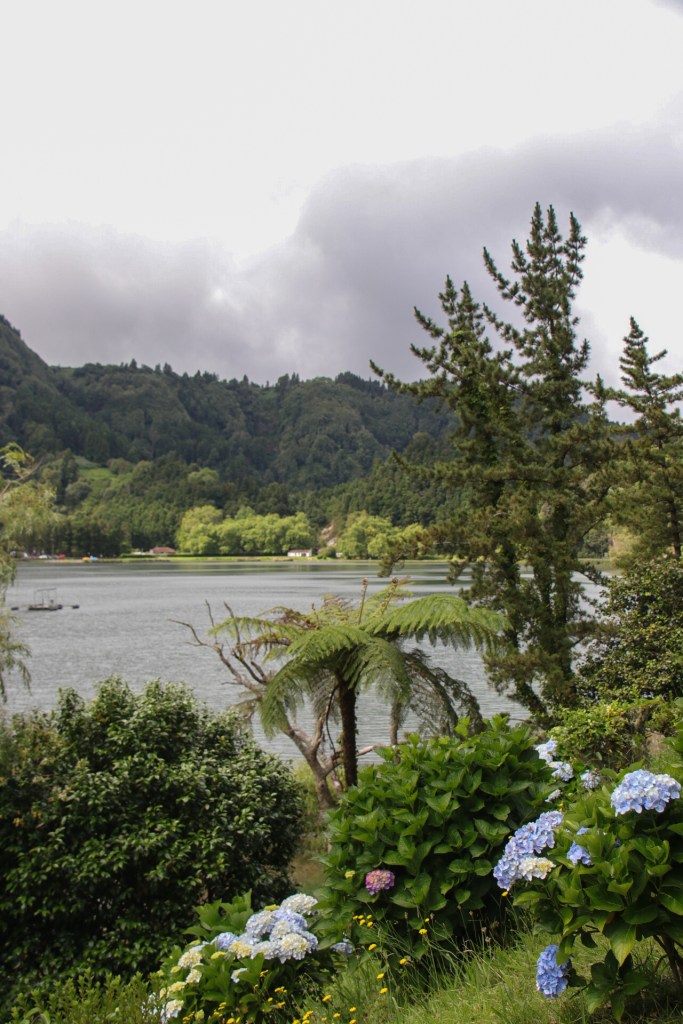 Für heute war allerdings nochmal Sao Miguel und genauer gesagt der feurige Osten angedacht. Also fuhren wir im Süden immer über die Dorfstraßen die Küste entlang. Hier habe ich trotz meterhoher Hortensienhecken nicht das Problem der fehlenden Viewpoints, denn es gibt reichlich. Hinzu kommen noch sehr viele Picknickplätze, die auch an den schönsten Aussichtspunkten unter dem dichten Baumdach errichtet wurden. Und das sind nicht nur schöne Picknickplätze, nein, teils sind sie wie Parkanlagen angelegt, haben Grillmöglichkeiten, Toiletten und Wasseranschluss. Das ermöglicht zwar romantischen einheimischen Jünglingen in der ersten Phase der Verliebtheit garantiert einschlägige Eindrücke bei ihren Liebsten. Schließlich reicht so ein Platz, ein kühles Getränk und etwas zum Grillen für maximale Romantik schon aus. Aber für uns bedeutet es, dass wir mehr aus dem Auto aussteigen, als zu fahren. Ständig diese tollen Ausblicke über die üppige Natur, fürchterlich.